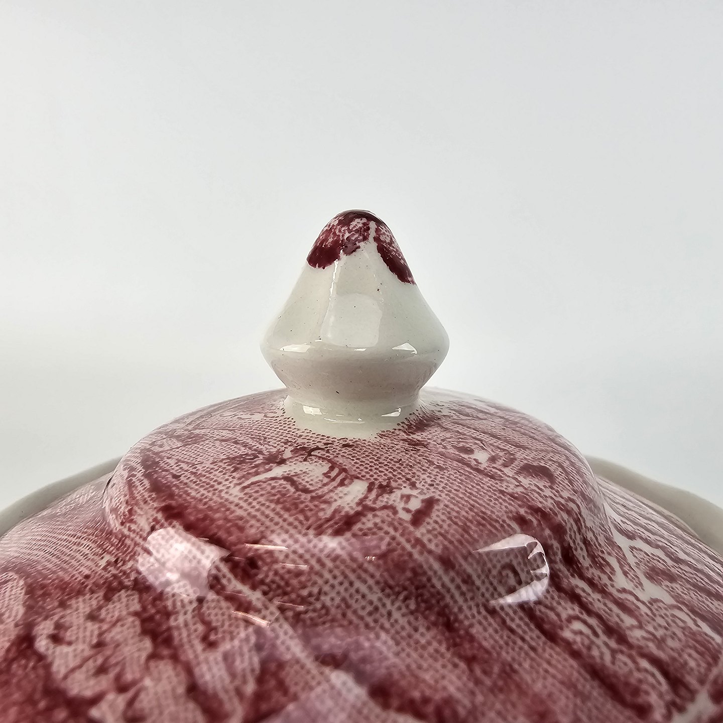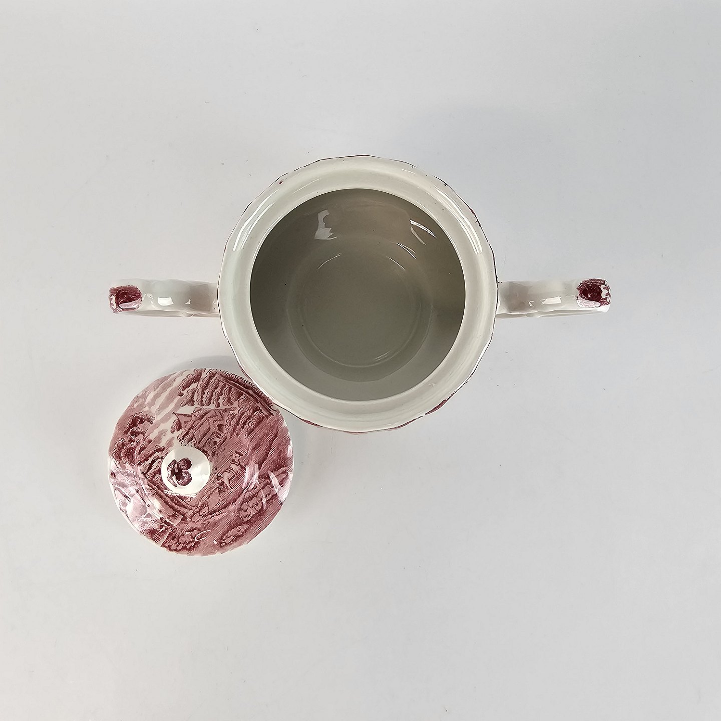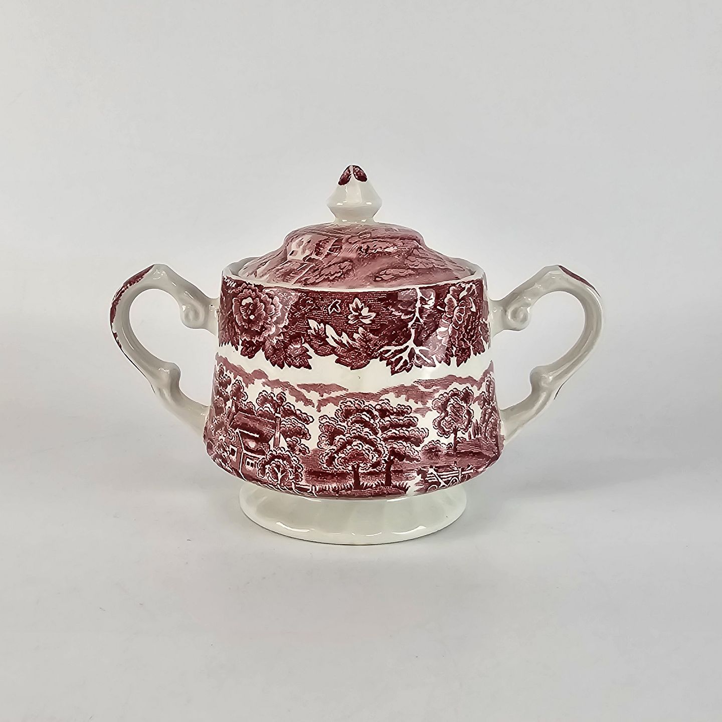 Sukkerskål med låg fra det engelske stel Rød Paris (Enoch wood's, English scenery)