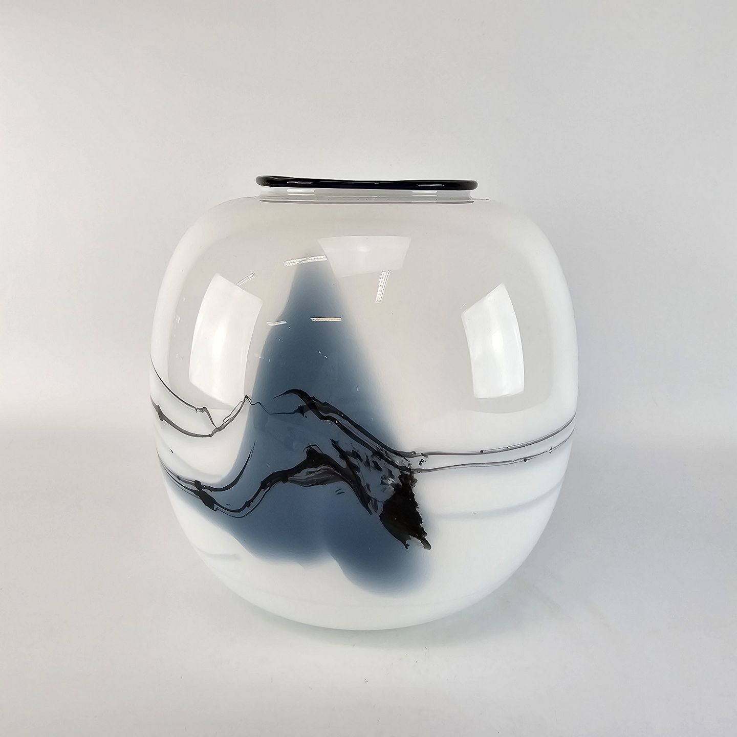 Mundblæst vase i glas med blå kant fra serien Atlantis. Nr. 388