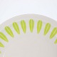 Service i glat hvidt porcelæn, som er påført en cirkel af lotusblade. Stellet er produceret i flere farver