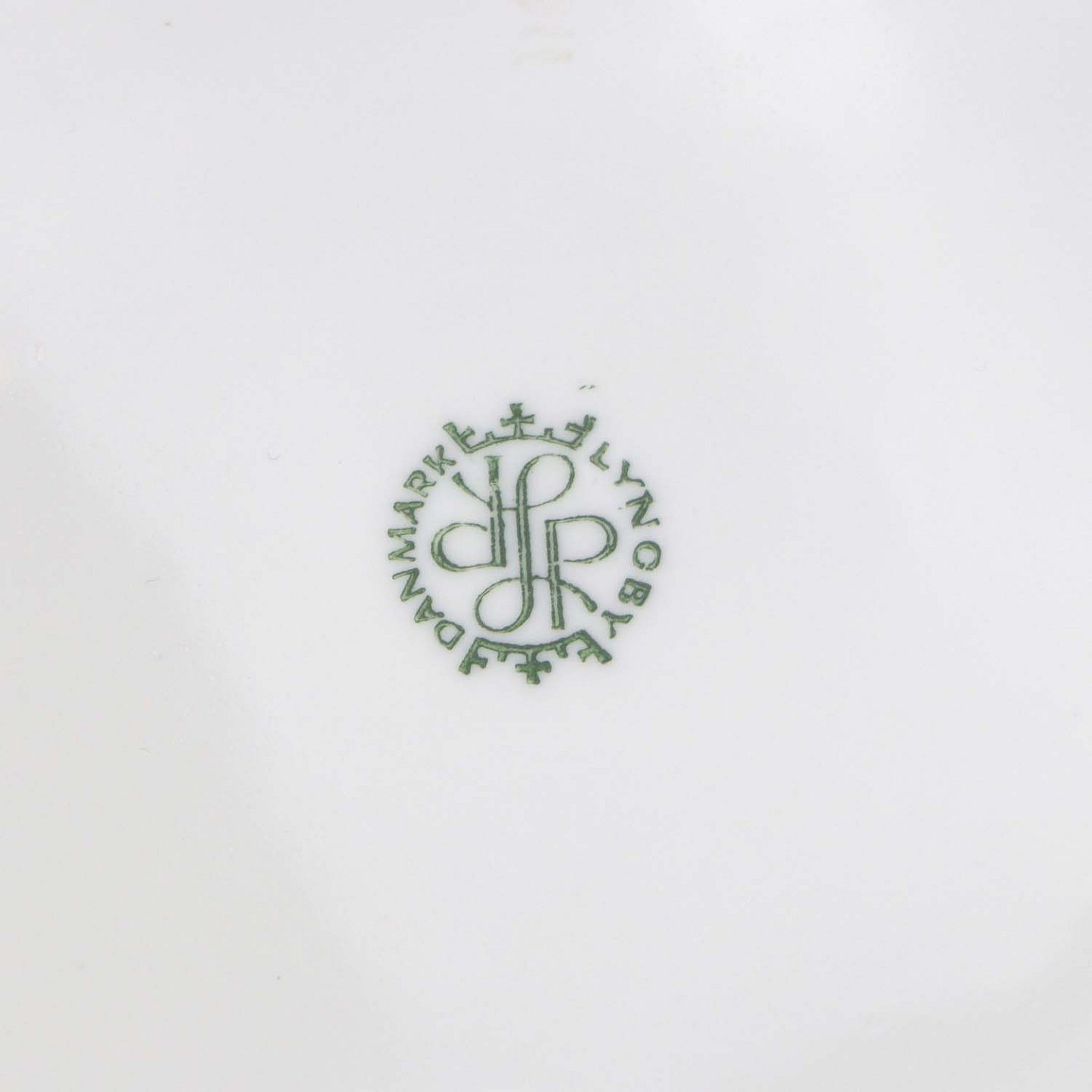 Service i glat hvidt porcelæn, som er påført en cirkel af lotusblade. Stellet er produceret i flere farver
