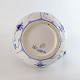 Musselmalet er af kongeligt hvidt porcelæn, dekoreret med rifler og mønster af blå ranker og blomster
