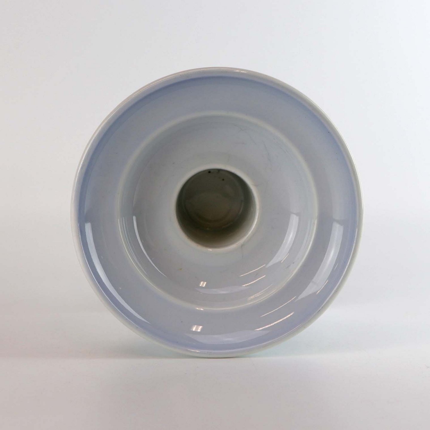 Lysestage i porcelæn med lyseblå og hvide nuancer samt riflet stamme.