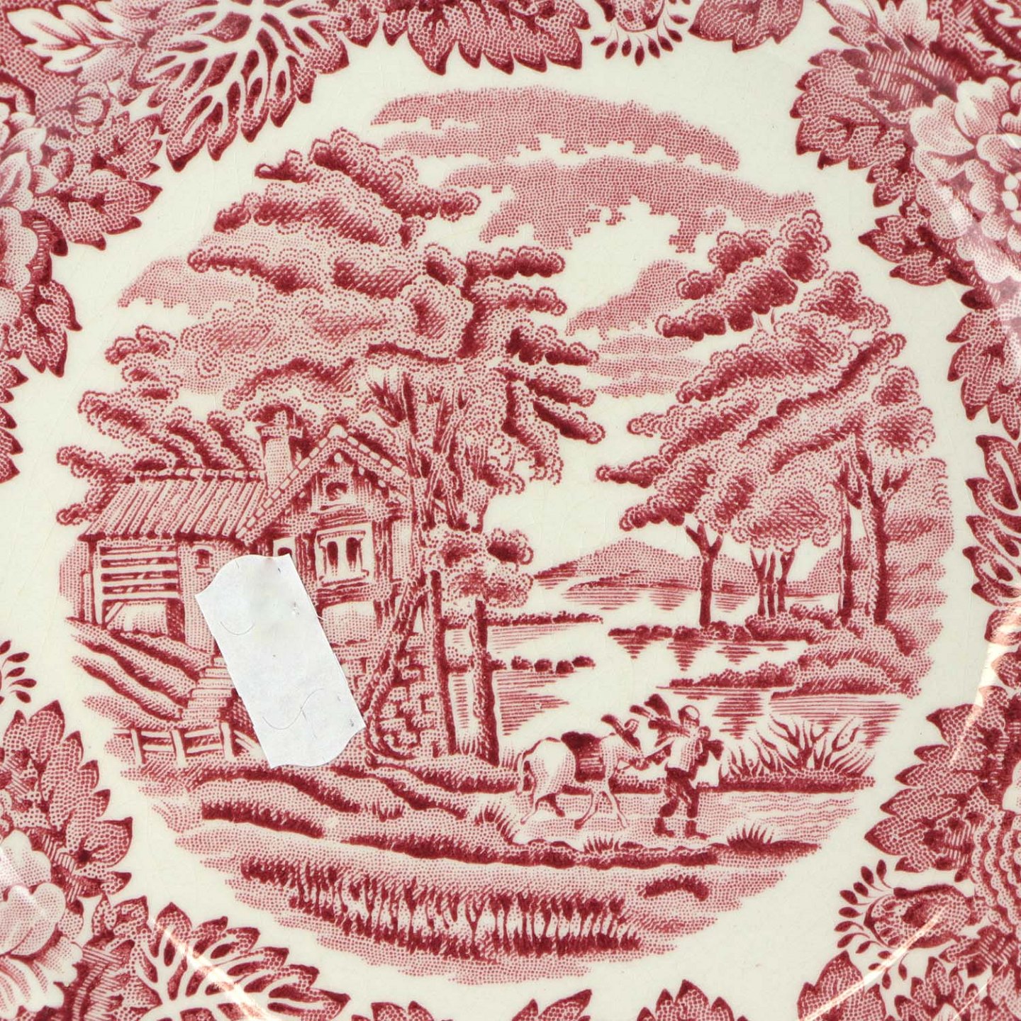 Frokosttallerken fra det engelske stel Rød Paris (Enoch wood's, English scenery)