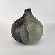 Rund vase i keramik med tilspidset hals i dæmpede lyse, gråblå og sorte