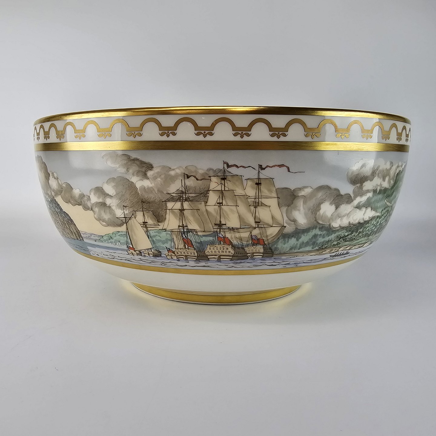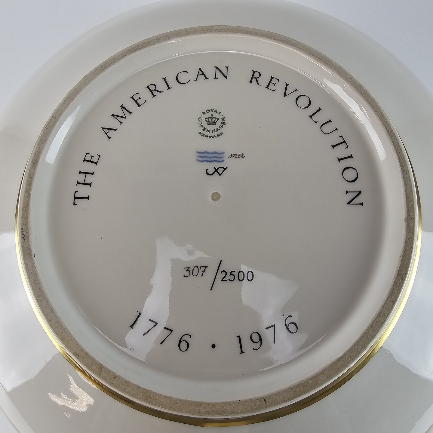 Skål i porcelæn med gulddekoration og motiv fra den amerikanske uafhængighedskrig. 200 års jubilæums bowle 1776-1976. Nr. 307/2500