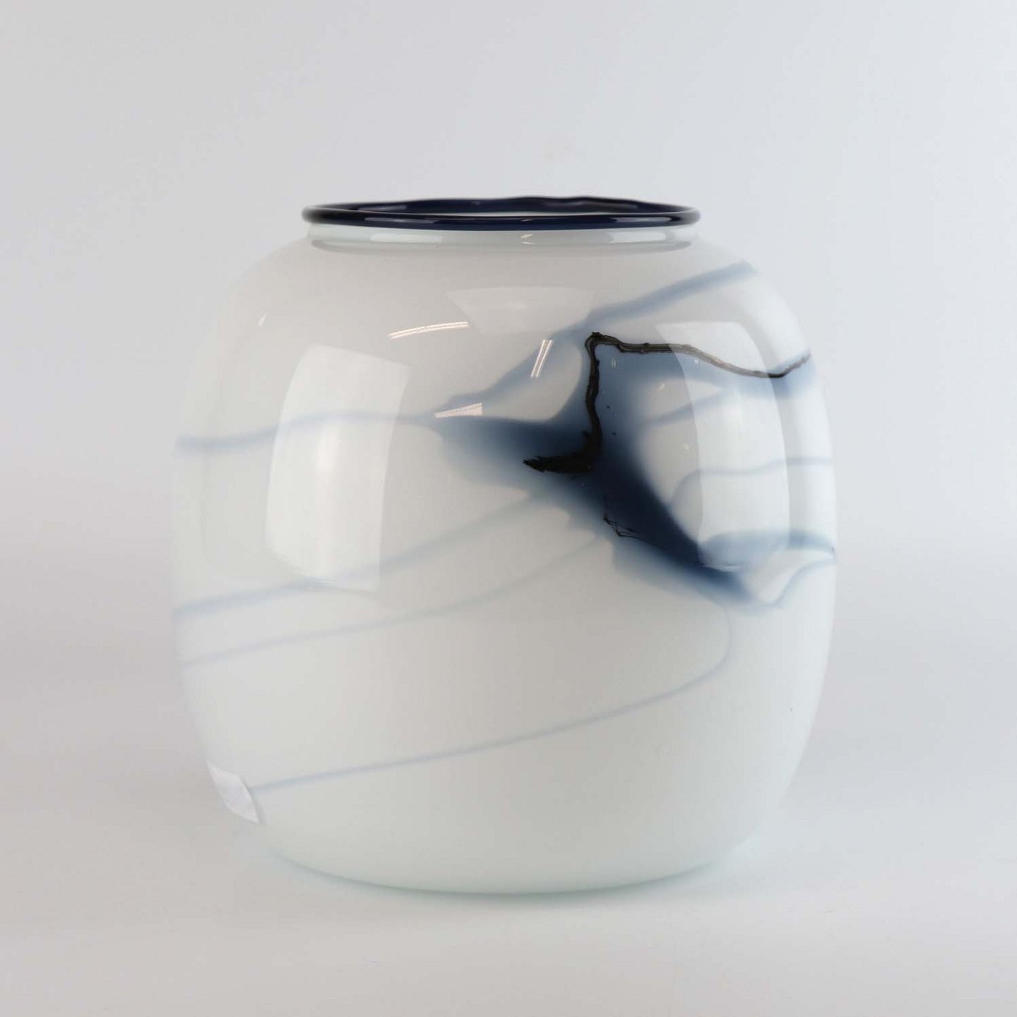 Mundblæst vase i glas med blå kant fra serien Atlantis