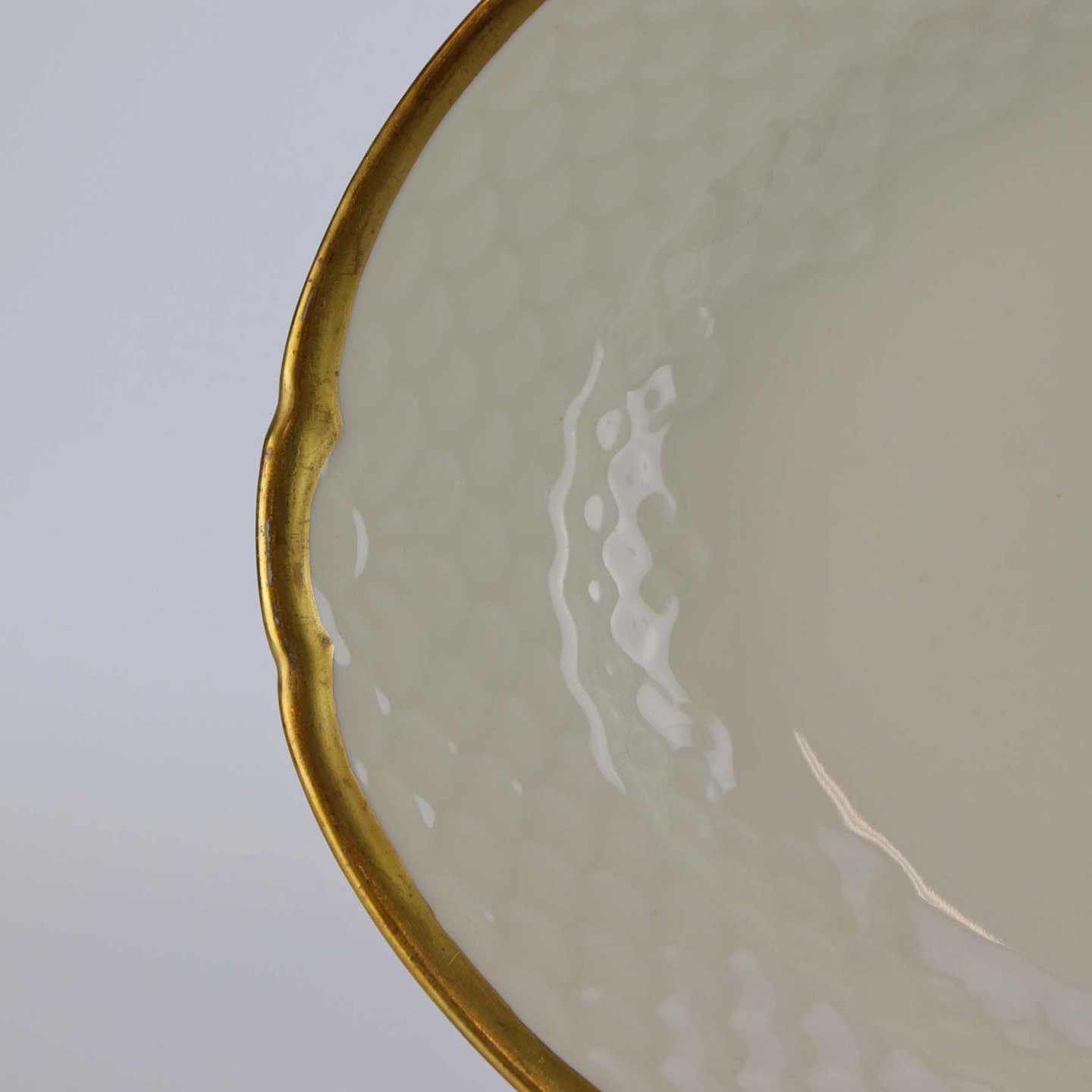 Service i lyst porcelæn med skælform og gylden kant