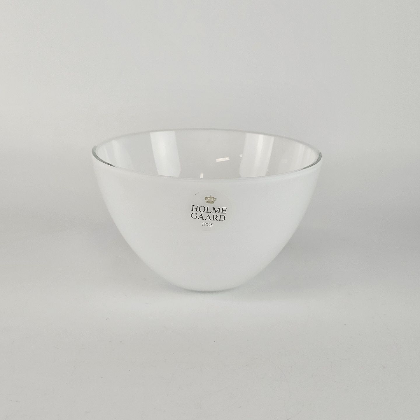 Mundblæst glasskål i hvid. Fra serien Cocoon