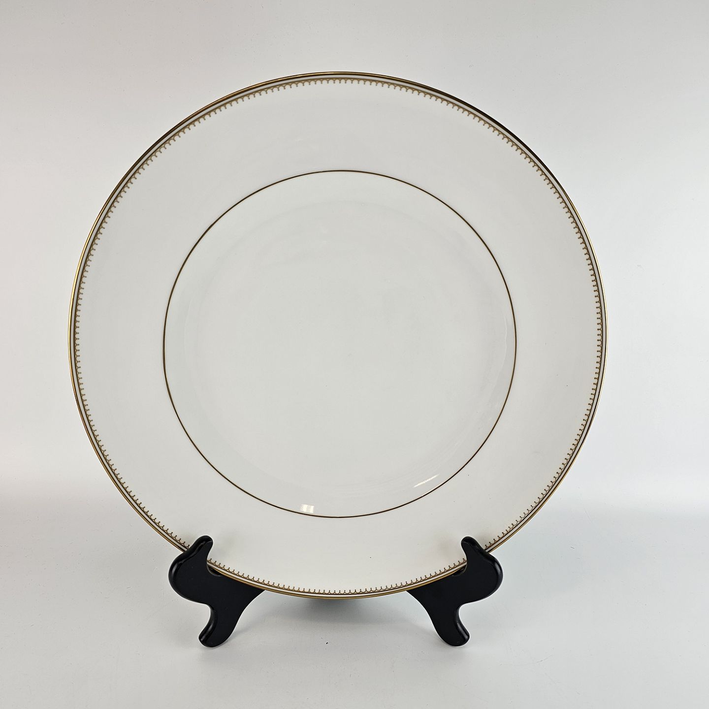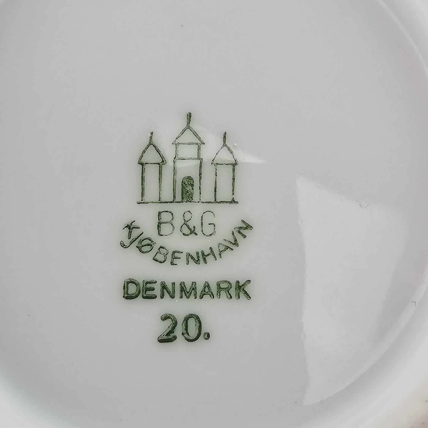Menuet er hvidt glaseret porcelæn dekoreret med guld i kanten. Lettere brugsspor kan forekomme.