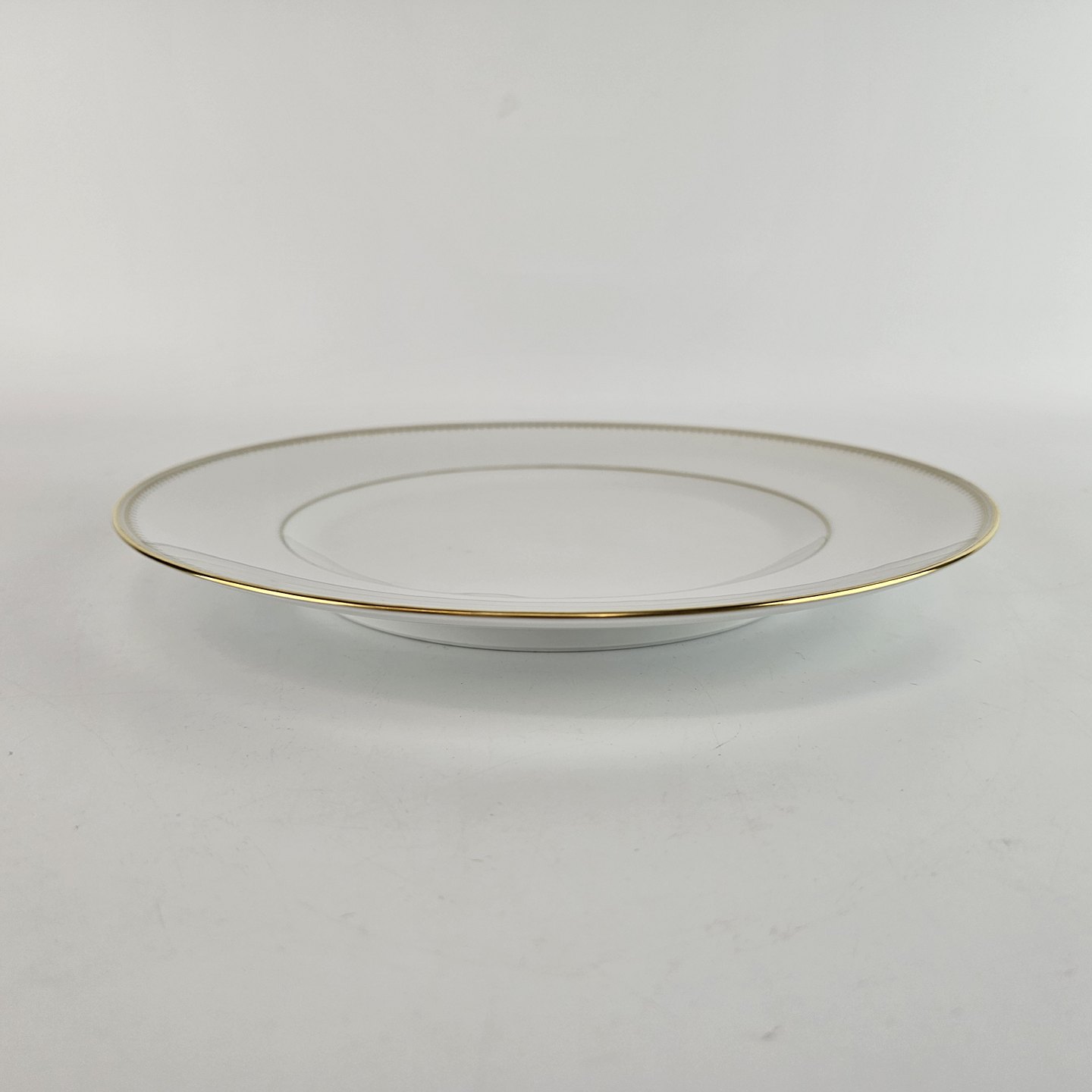 Menuet er hvidt glaseret porcelæn dekoreret med guld i kanten. Lettere brugsspor kan forekomme.