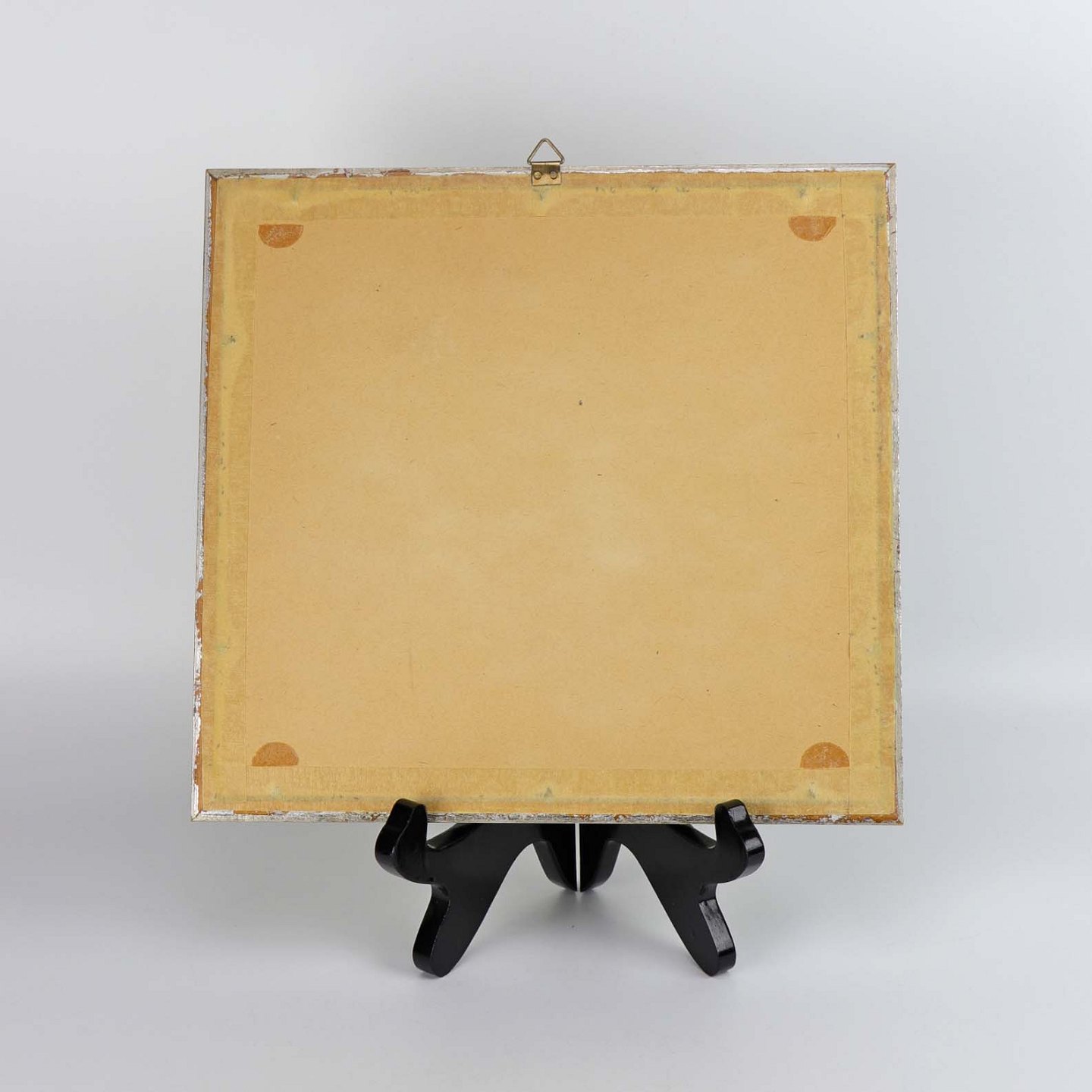 Mindre litografisk tryk i sølvmalet træramme. Litografiet er er dateret 1976 og har en farverig abstrakt komposition med gulligt passepartout nr. 117/200