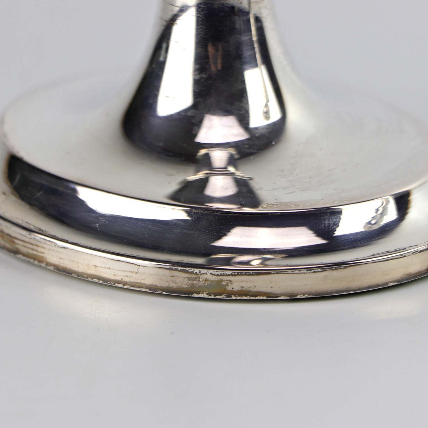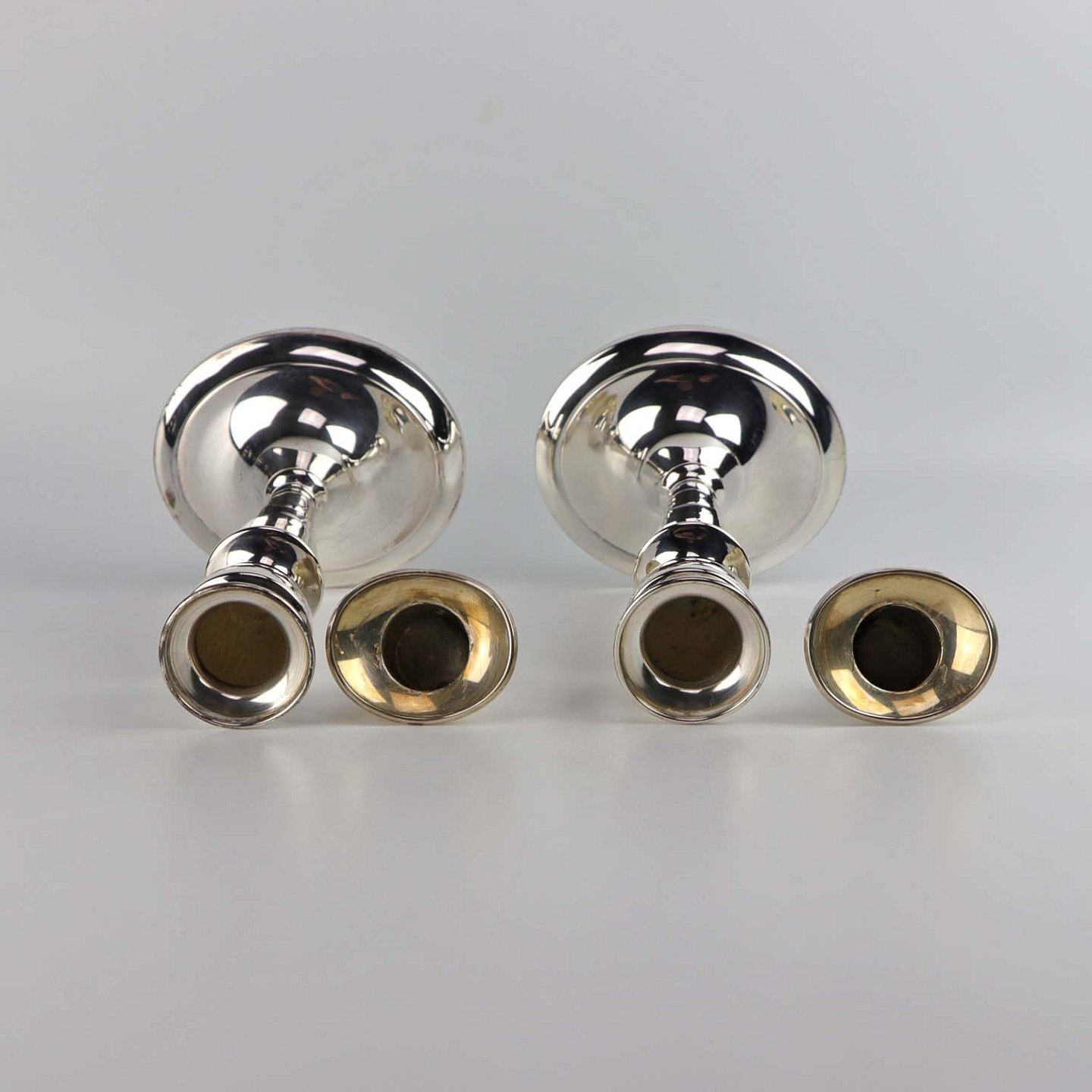 Et sæt lysestager i sølv med oval fod og aftagelige toppe