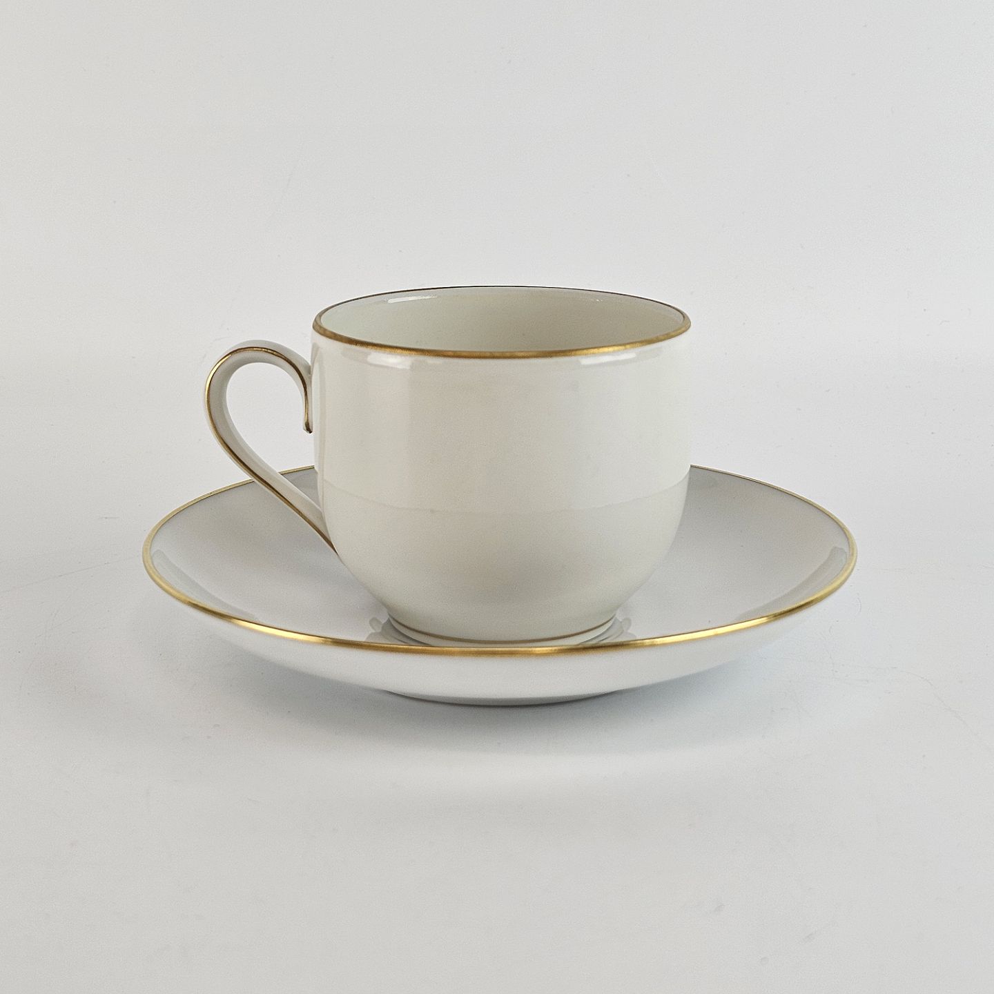 Aarestrup serien er af hvidt porcelæn dekoreret med kanter af guld. Brugsspor kan forekomme