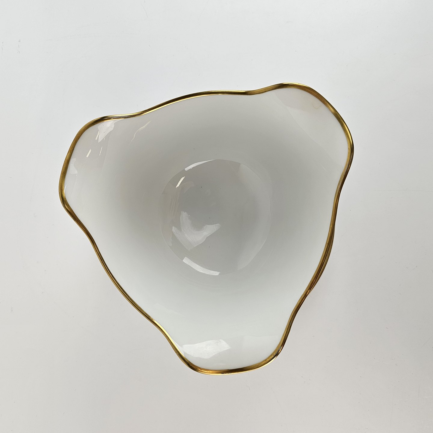Aarestrup serien er af hvidt porcelæn dekoreret med kanter af guld. Brugsspor kan forekomme