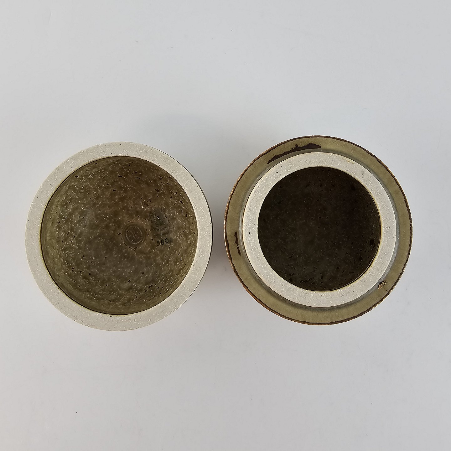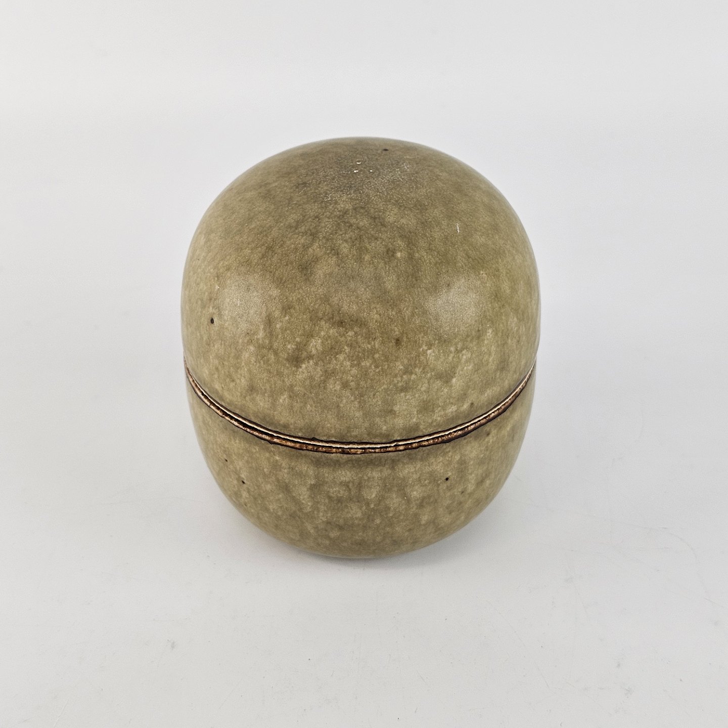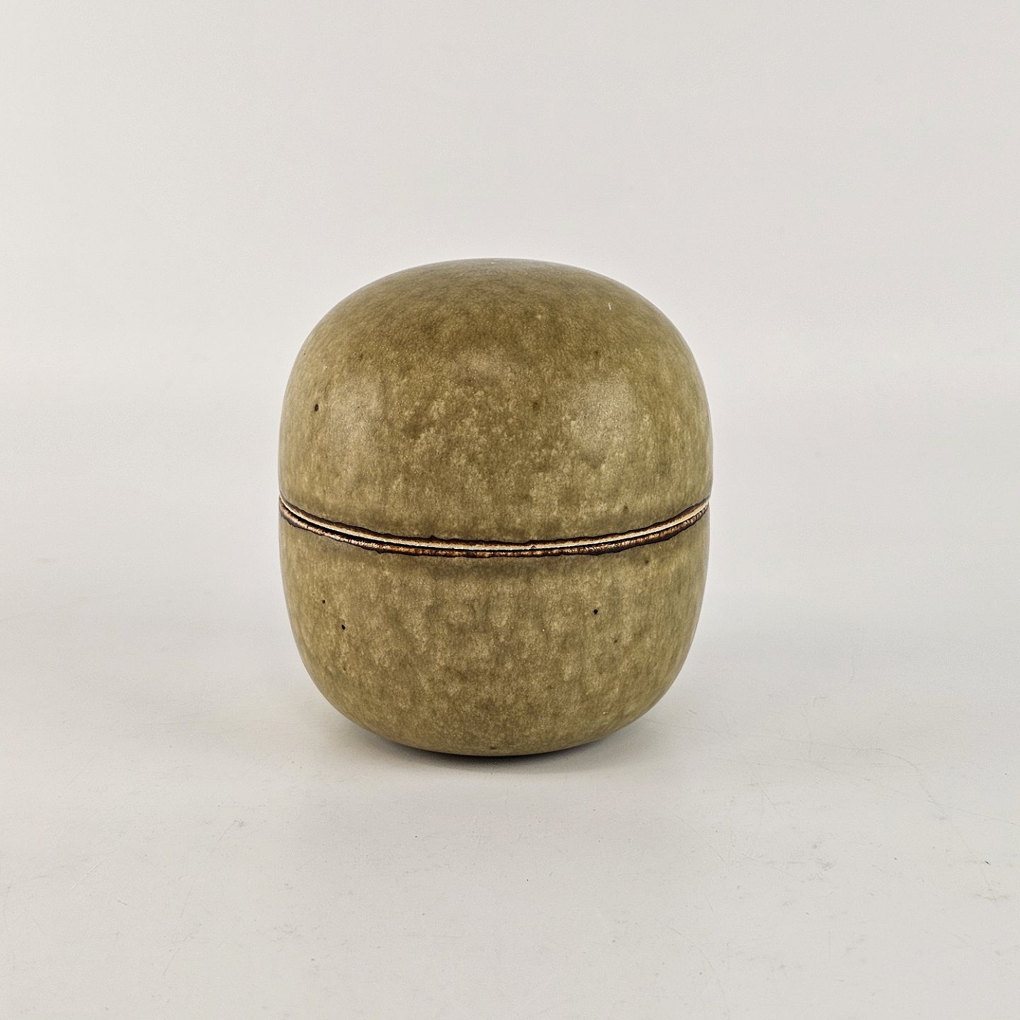 Grønmeleret stentøjskrukke med låg. Nr. 5806
