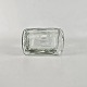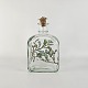 Firkantet karaffel med buet top og tilhørende korkprop. Dekoreret med en gren af mosepors, der slynger sig om karaflen og teksten Myrica gale L