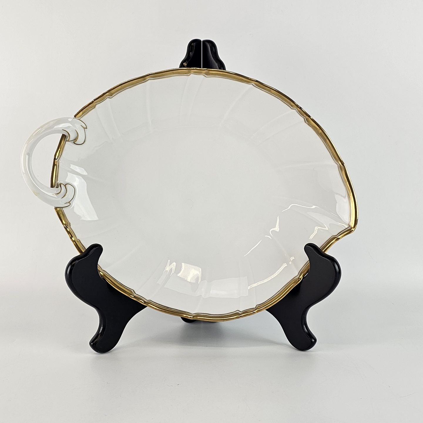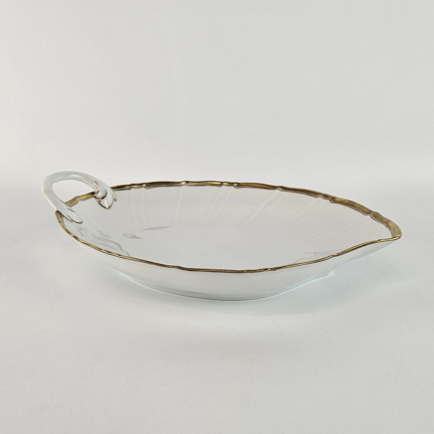 Fad formet som et blad og med hank, fra stellet Offenbach med guldkant. Nr. 199