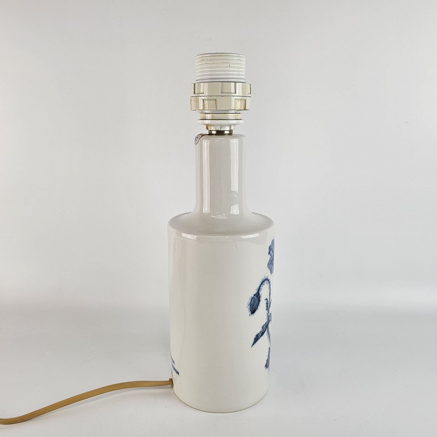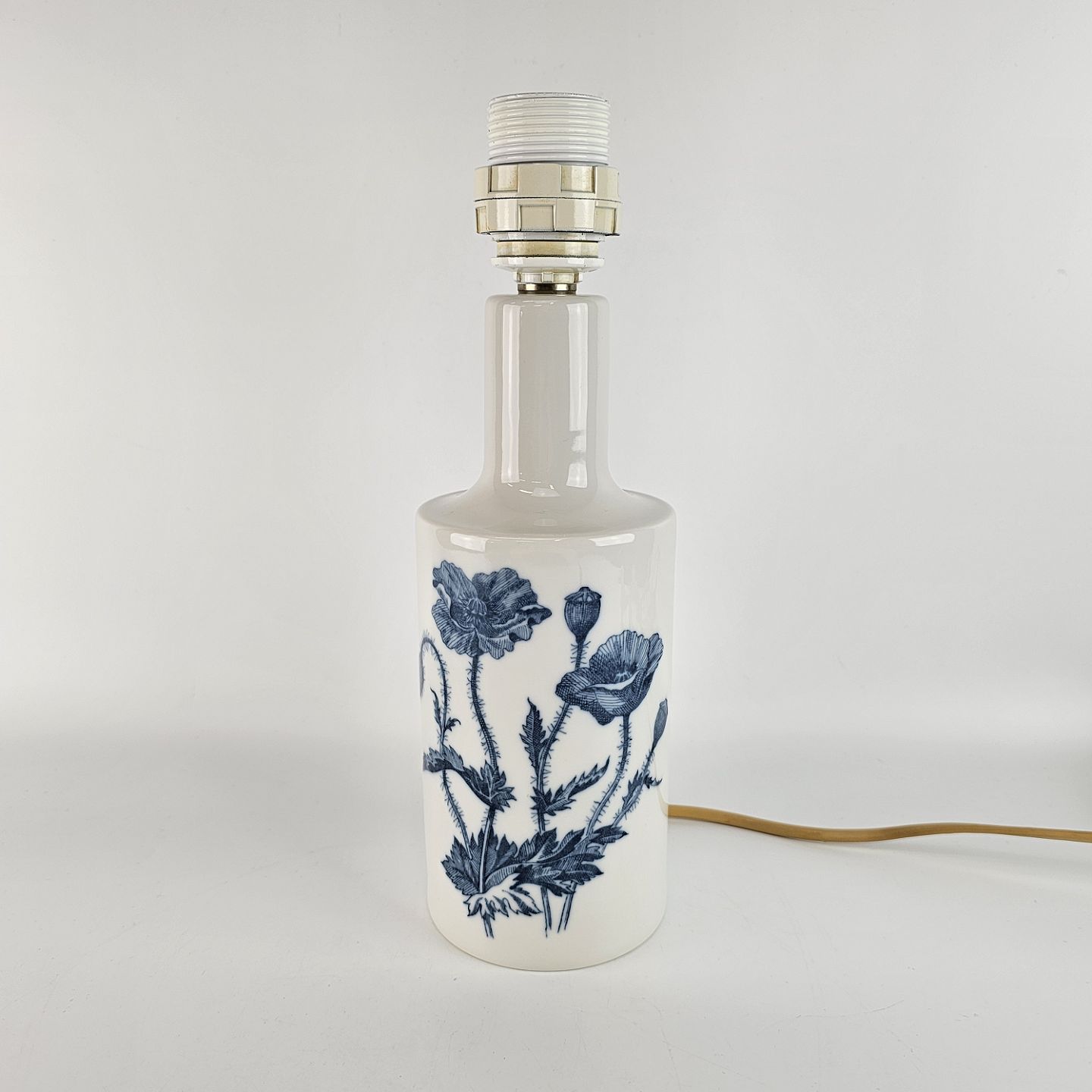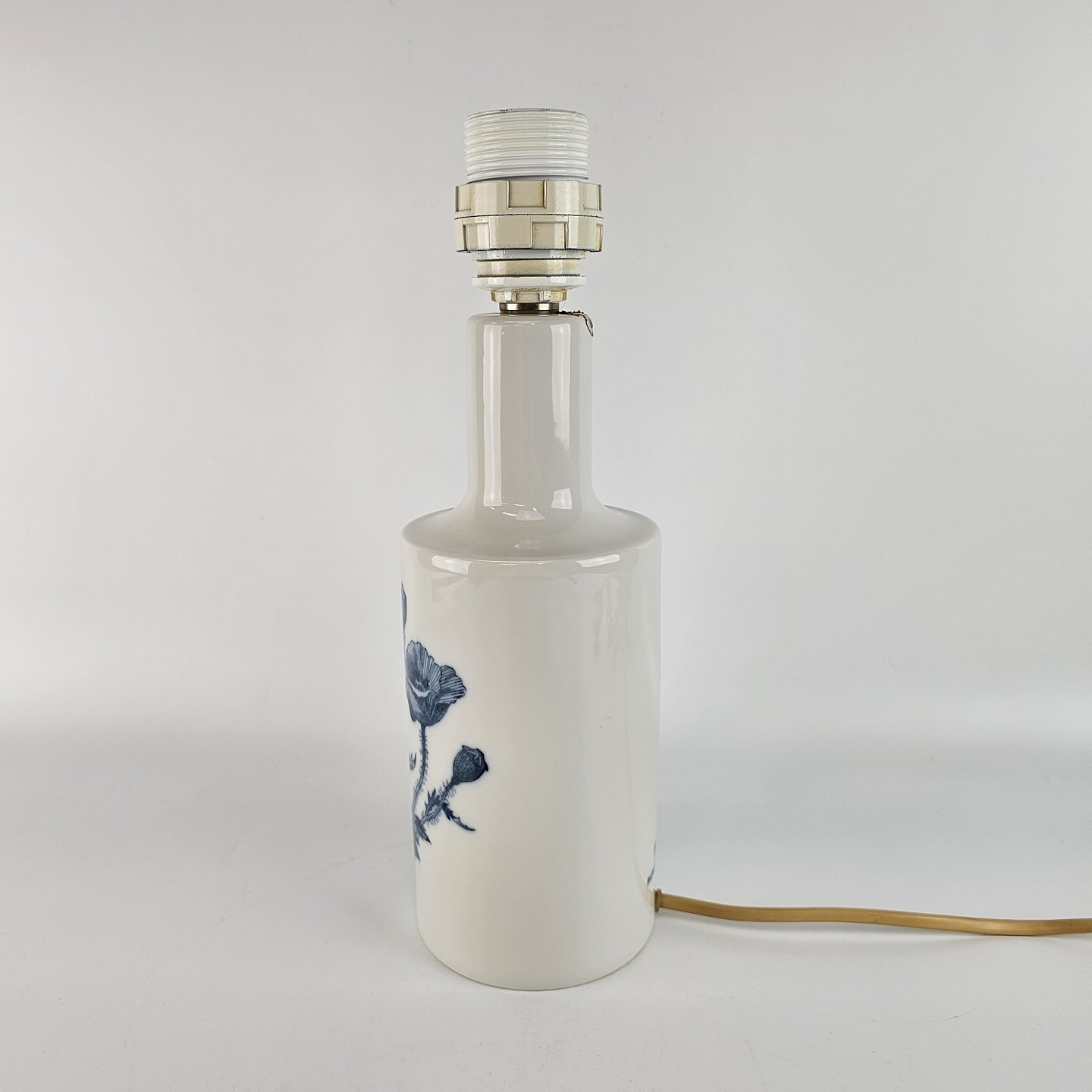 Bordlampe i kongelig porcelæn, dekoreret med blå valmuer og teksten Valmue, Papaver Dubium. Nr. 4623