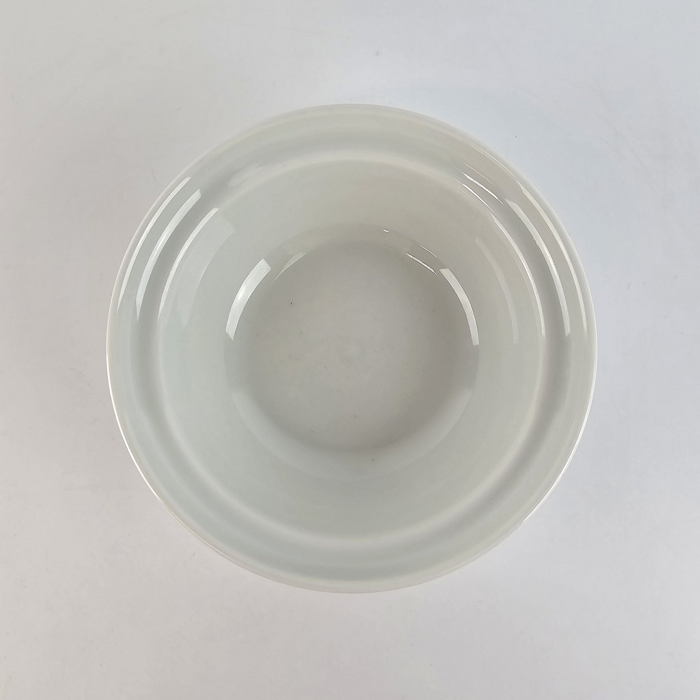 Hank er af hvidt glaseret porcelæn og med sorte hanke. Brugsspor kan forekomme
