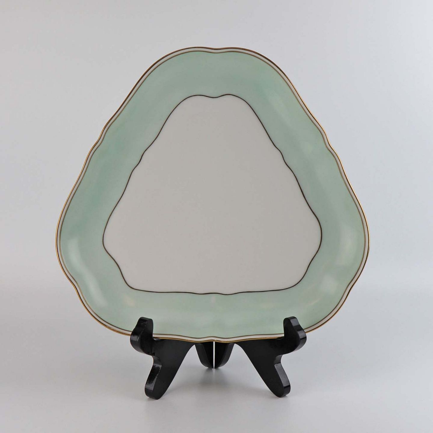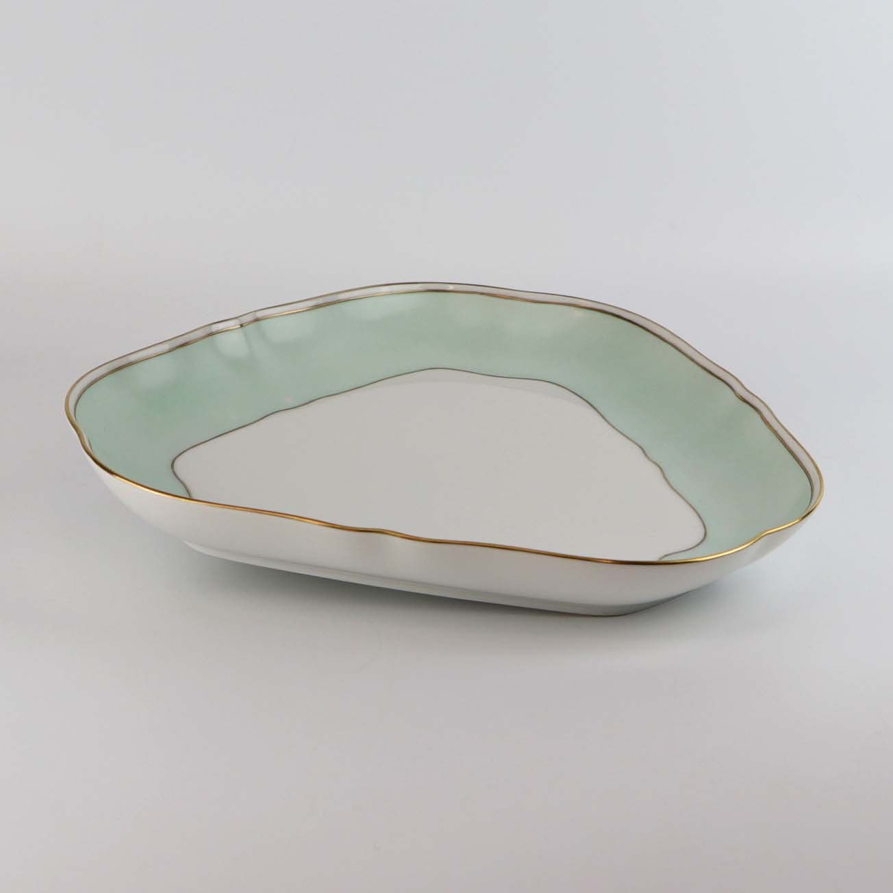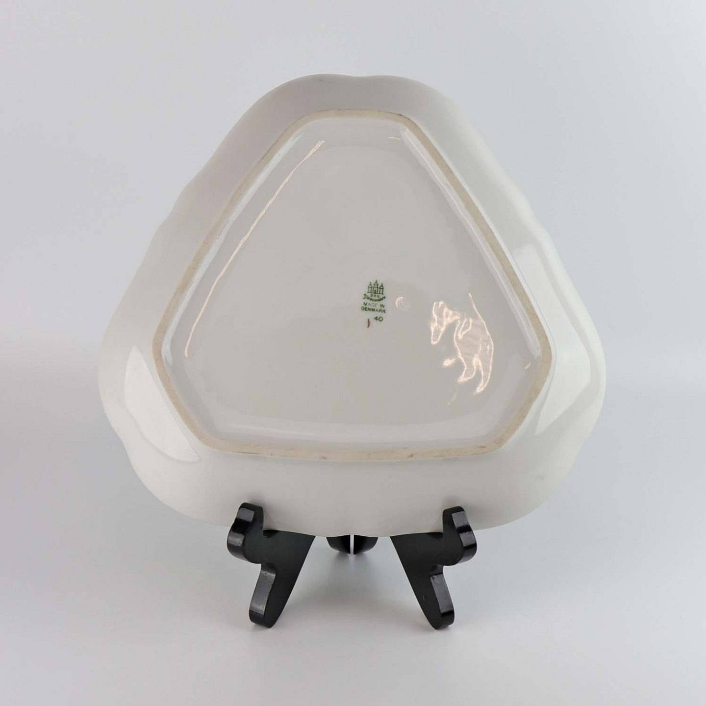 Trekantet fad i porcelæn med let bølget kant fra stellet Strauss nr. 40