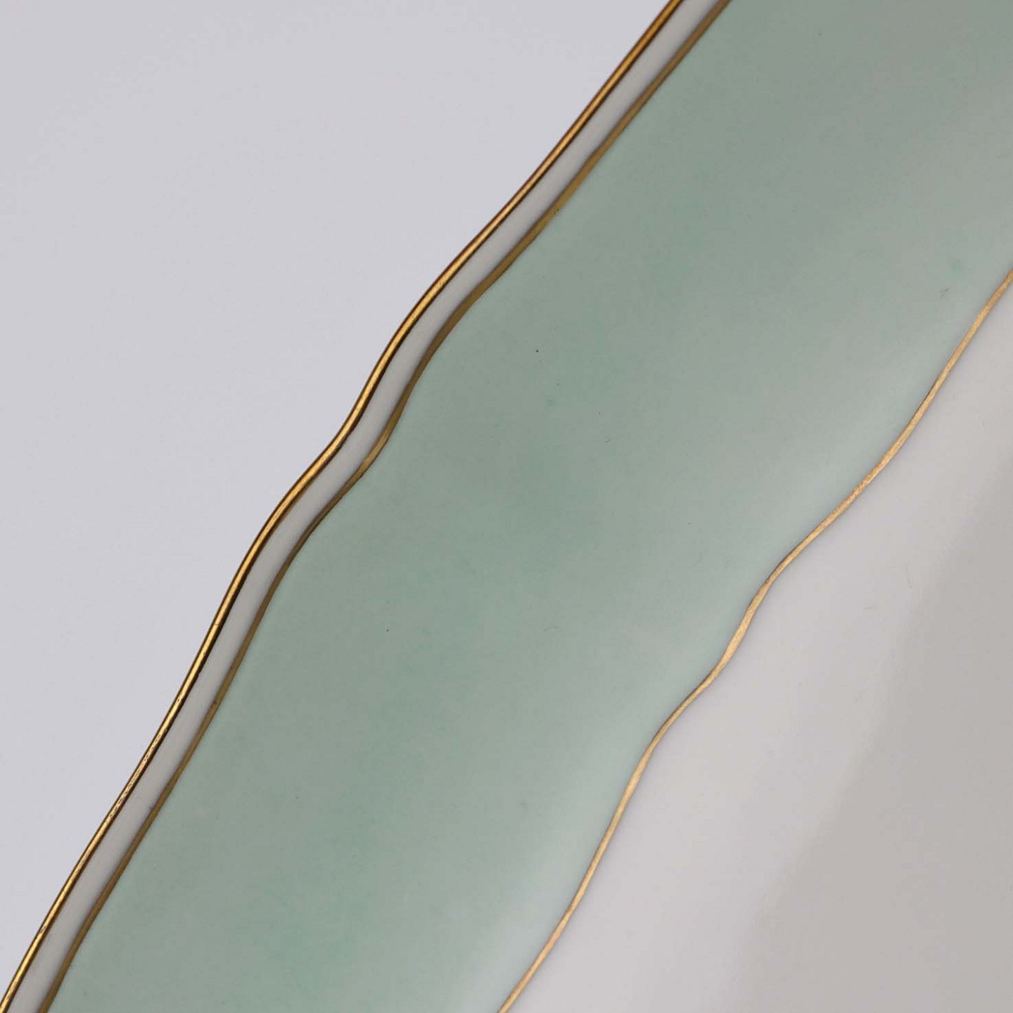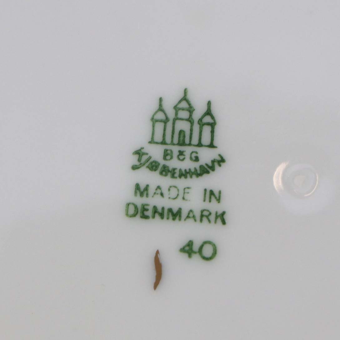 Strauss er af hvidt glaseret porcelæn med et bredt bånd i mintblå, samt enkelte guldlinjer. Lettere brugsspor kan forekomme