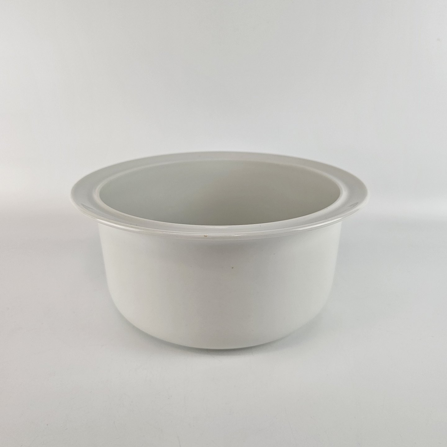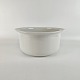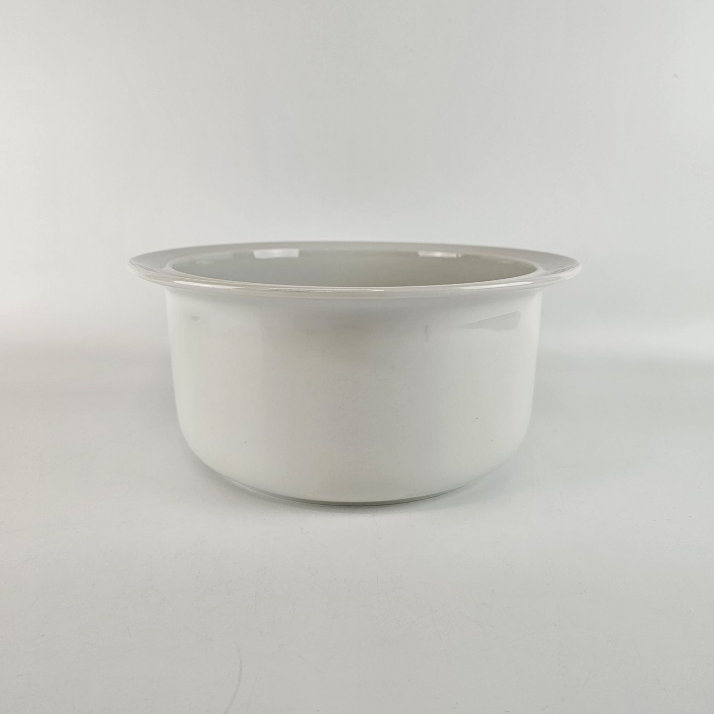 Hank er af hvidt glaseret porcelæn og med sorte hanke. Brugsspor kan forekomme