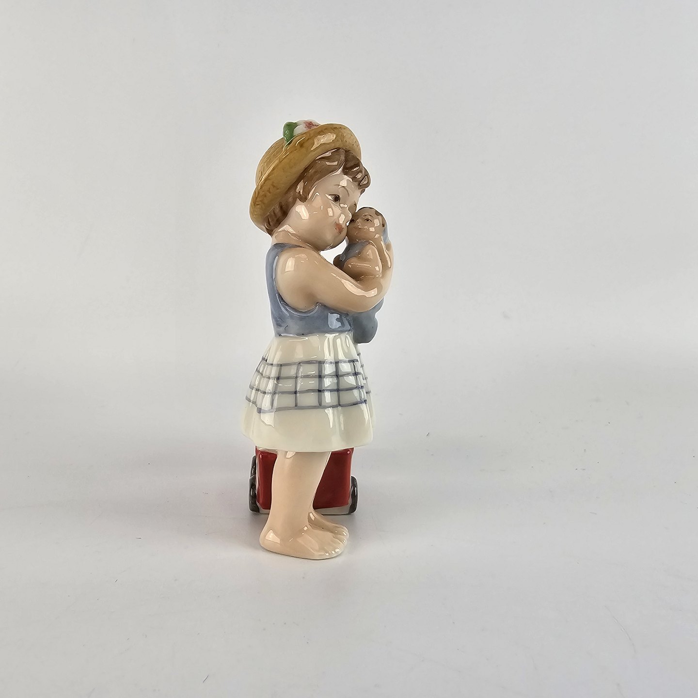 Figur af kgl. porcelæn formet som en pige med dukke og dukkevogn.