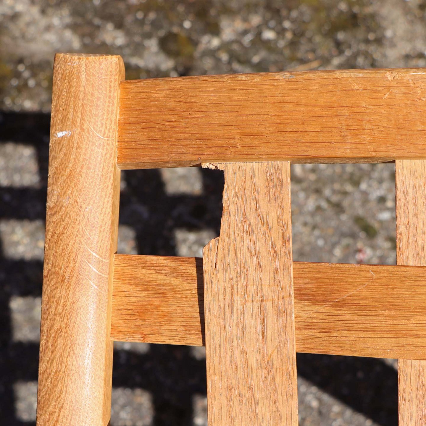 Fremstår med brugsspor i form af mindre afslag på stel ved ryggen, ridser på træ samt vandmærker