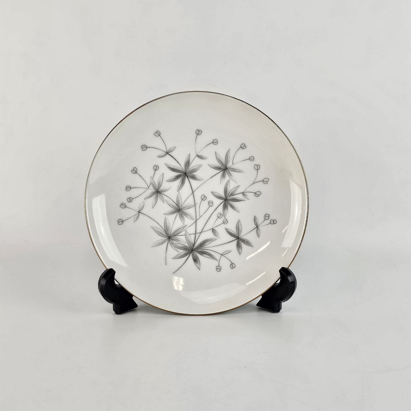 Stellet Henrik er af hvidt porcelæn dekoreret med grå burresnerre og guldkant. Mindre brugsspor kan forekomme