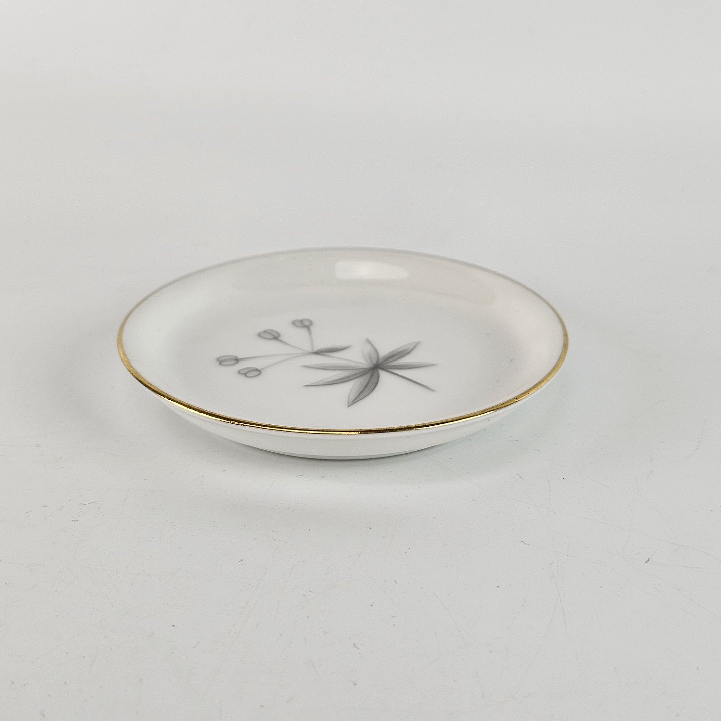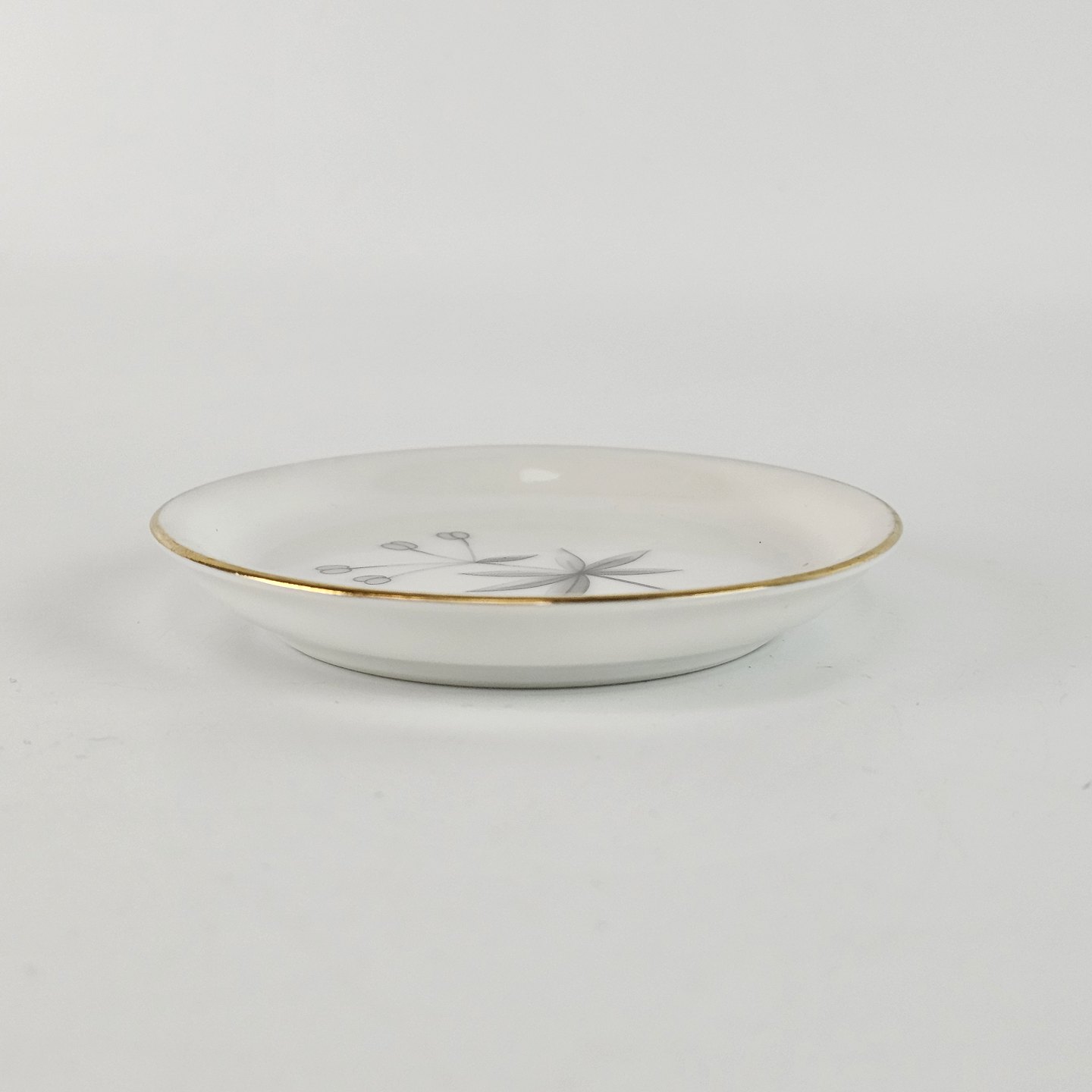 Stellet Henrik er af hvidt porcelæn dekoreret med grå burresnerre og guldkant. Mindre brugsspor kan forekomme
