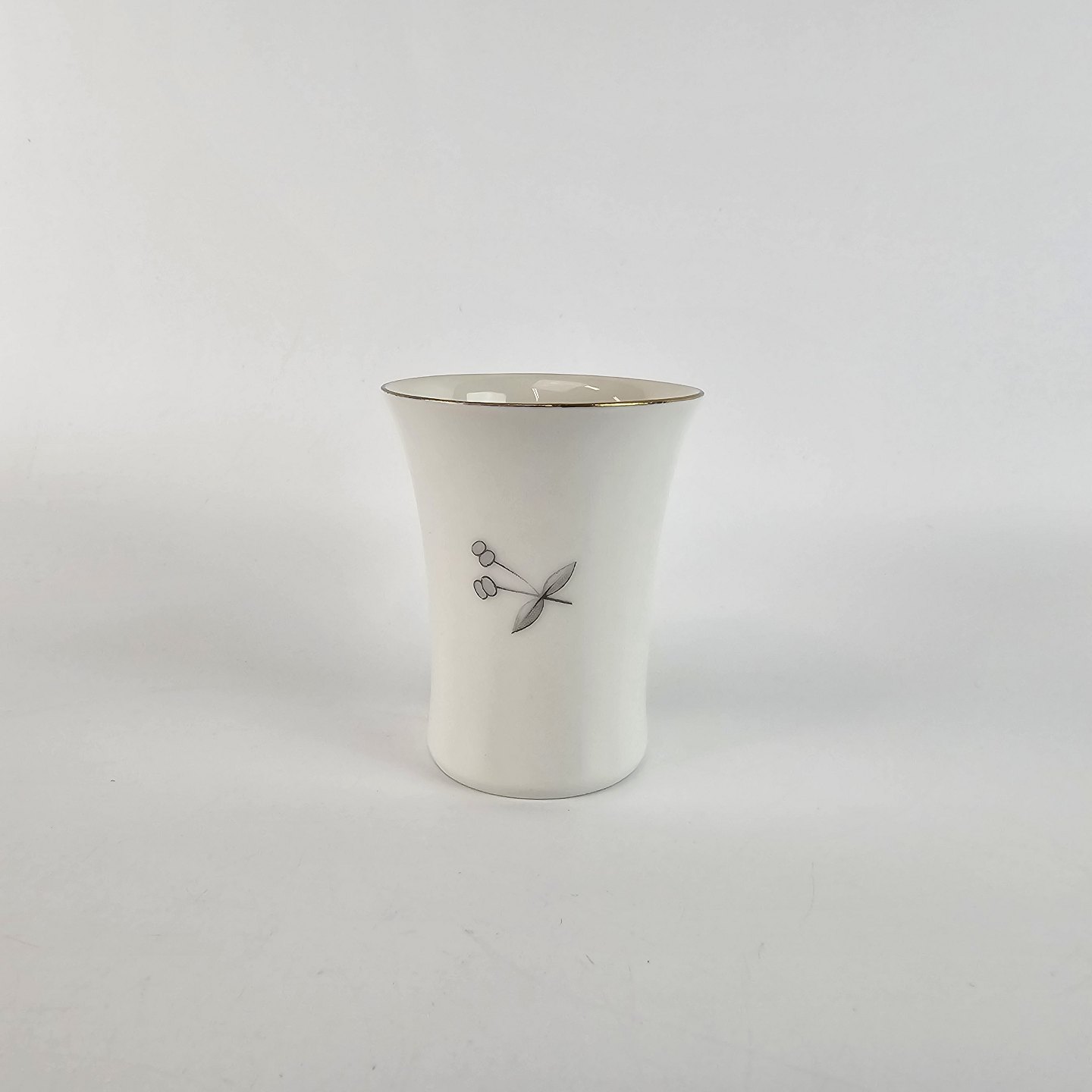 Stellet Henrik er af hvidt porcelæn dekoreret med grå burresnerre og guldkant. Mindre brugsspor kan forekomme