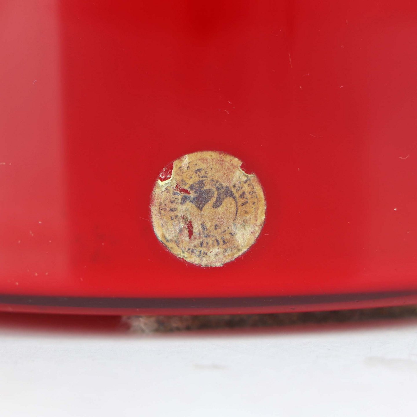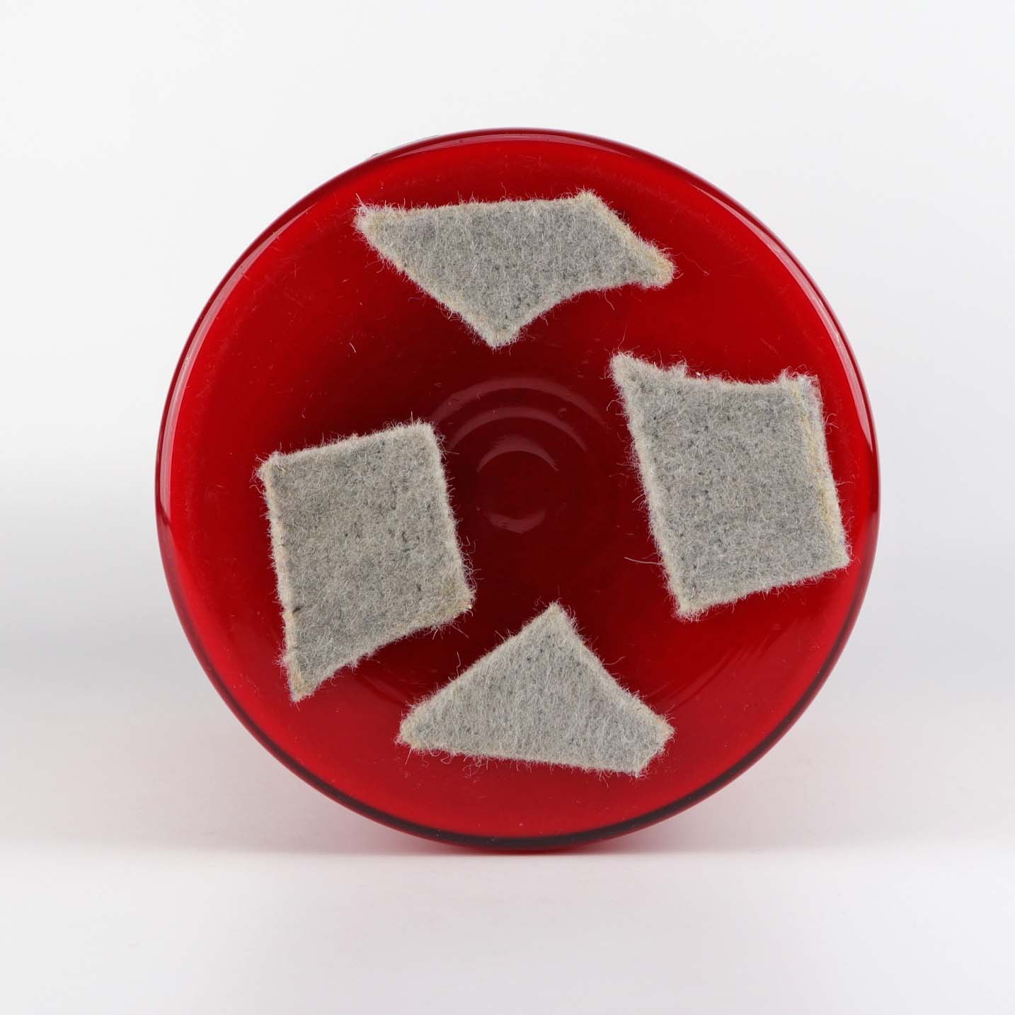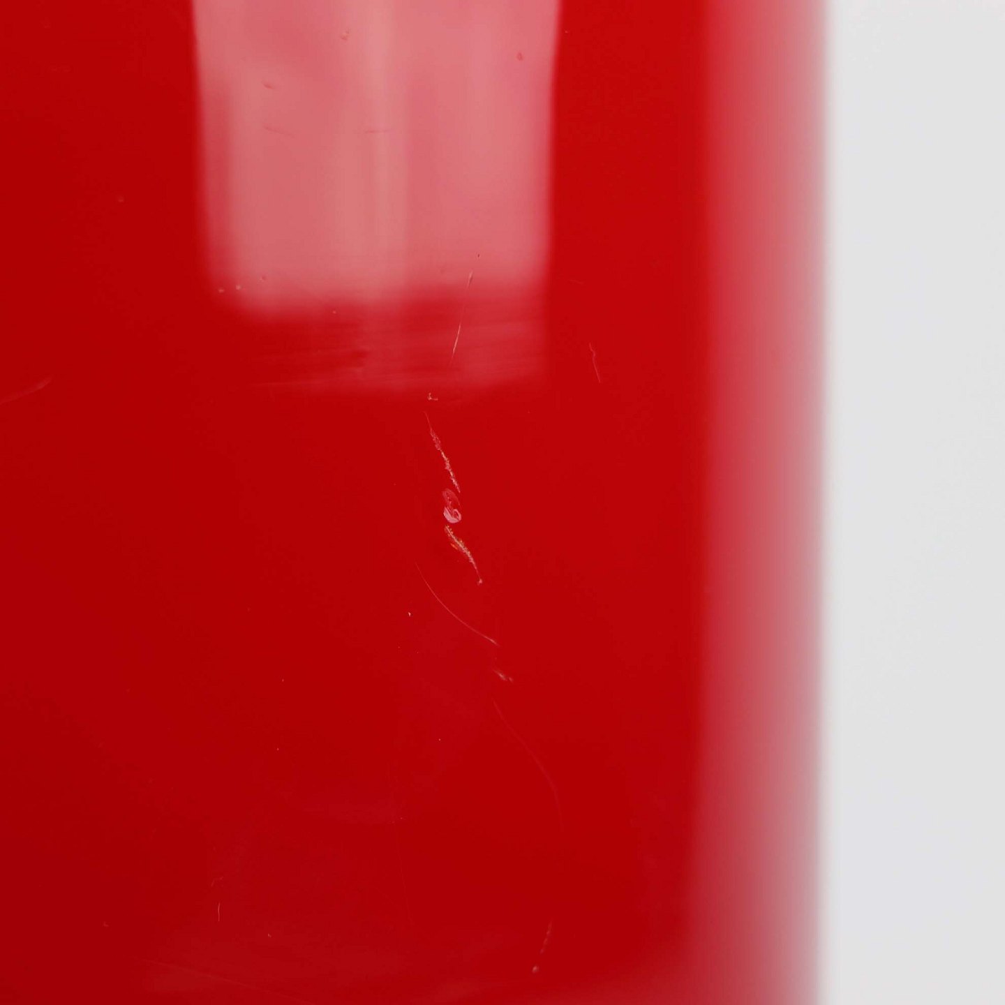Rød mundblæst glasvase med opalhvid inderside og topkant. Fra serien Rød Palet
