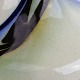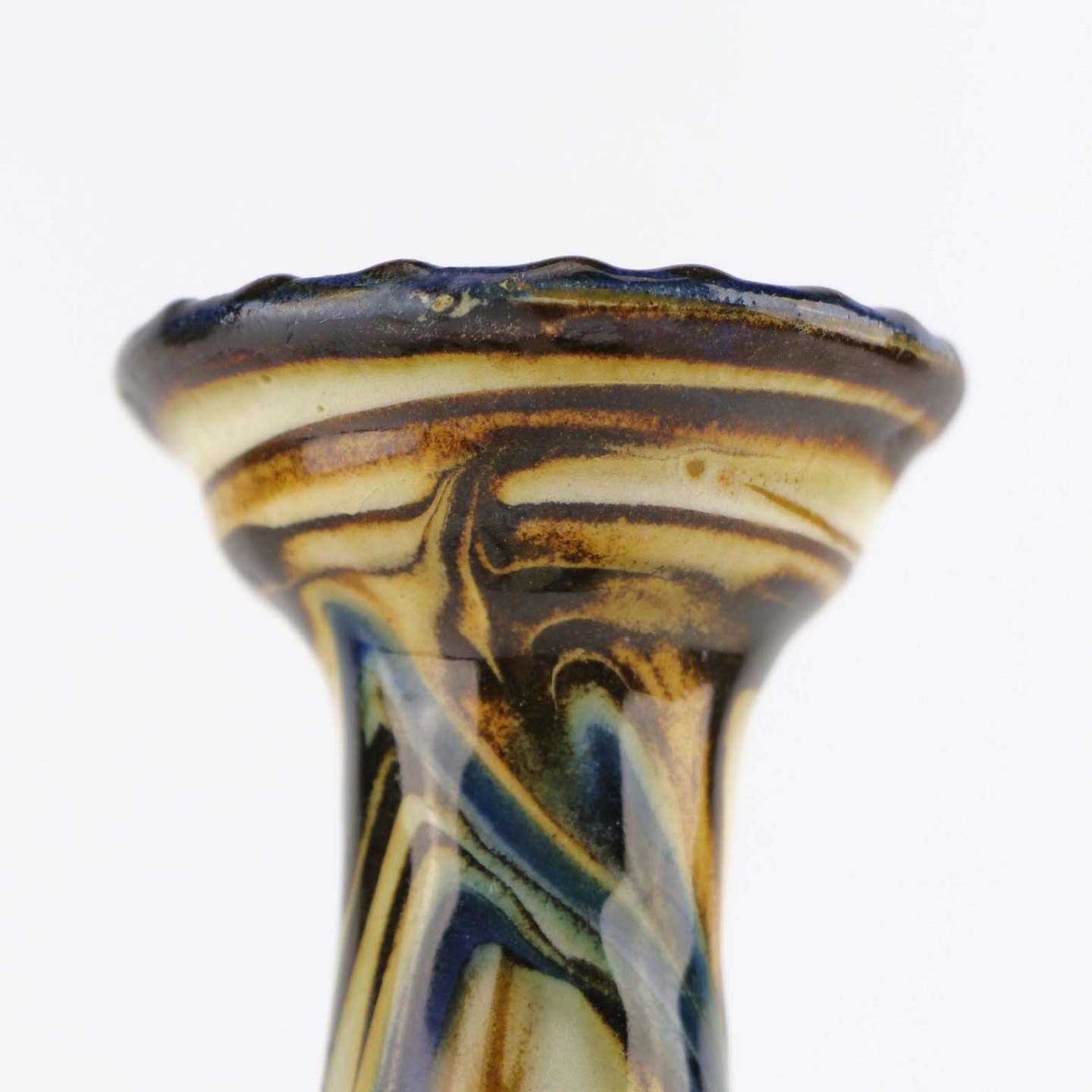 Vase i glaseret keramik med abstrakt mønster i sorte, gul og blå nuancer