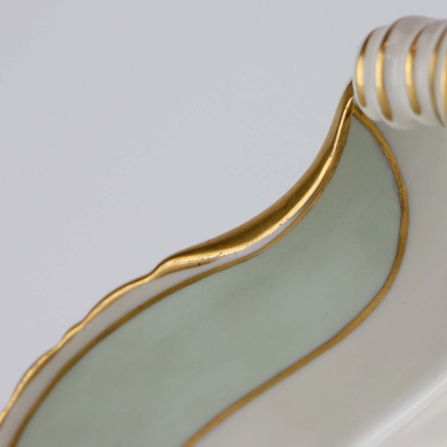 Strauss er af hvidt glaseret porcelæn med et bredt bånd i mintblå, samt enkelte guldlinjer. Lettere brugsspor kan forekomme