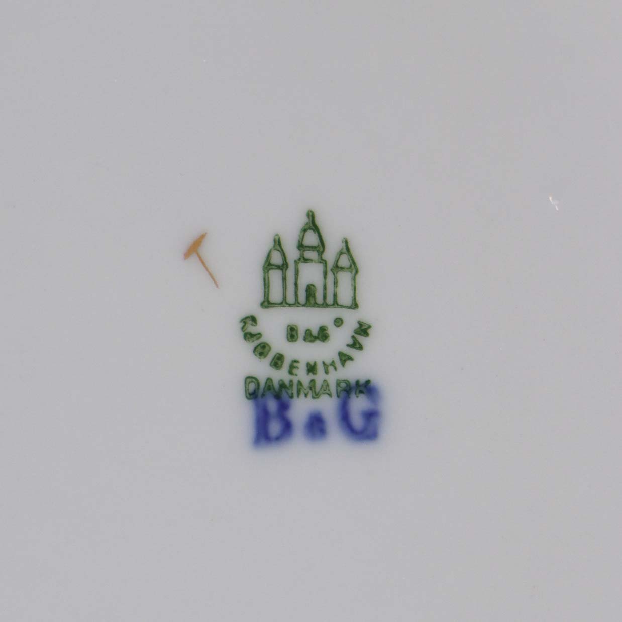 Strauss er af hvidt glaseret porcelæn med et bredt bånd i mintblå, samt enkelte guldlinjer. Lettere brugsspor kan forekomme