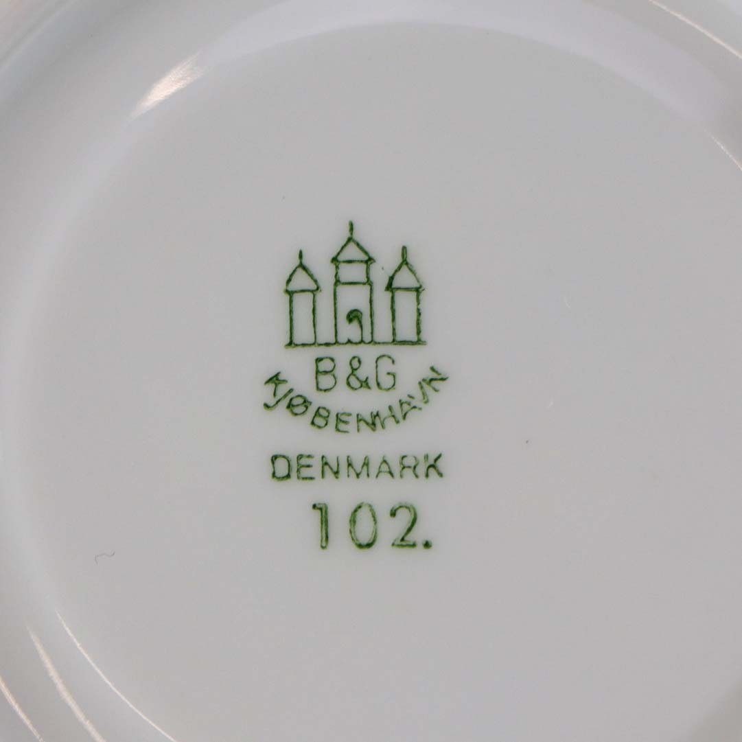 Strauss er af hvidt glaseret porcelæn med et bredt bånd i mintblå, samt enkelte guldlinjer. Lettere brugsspor kan forekomme