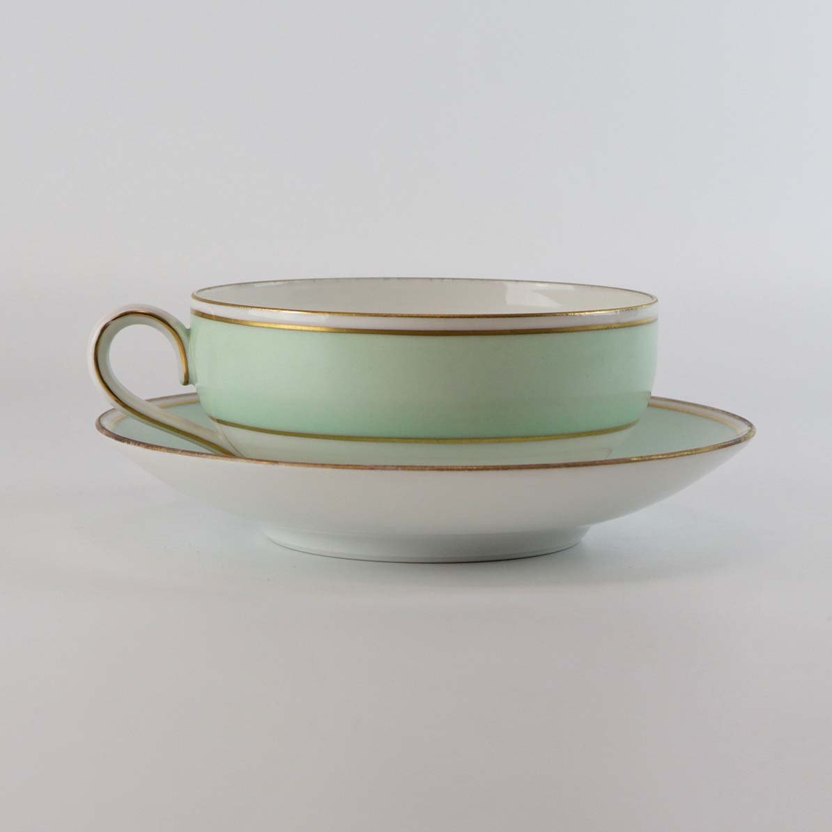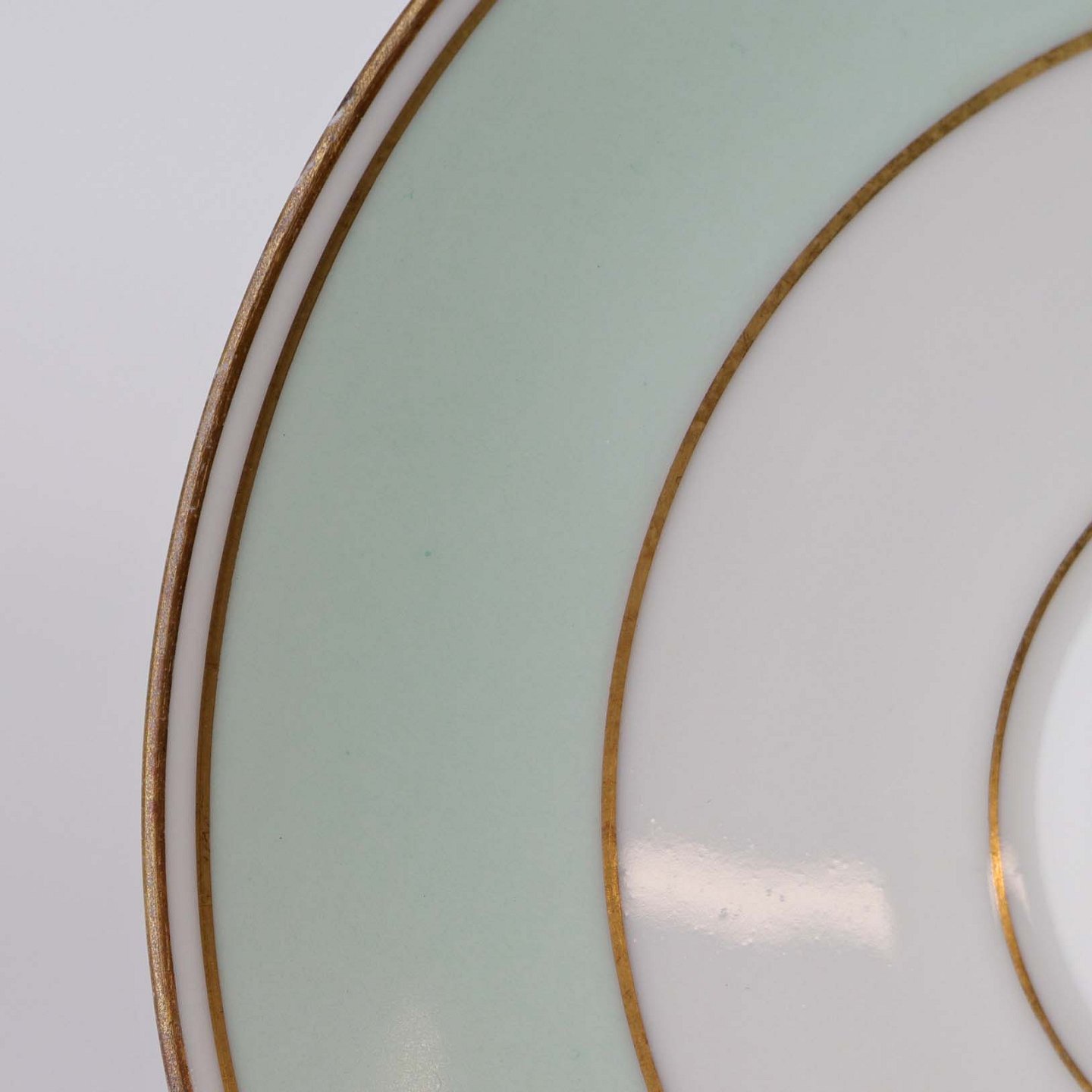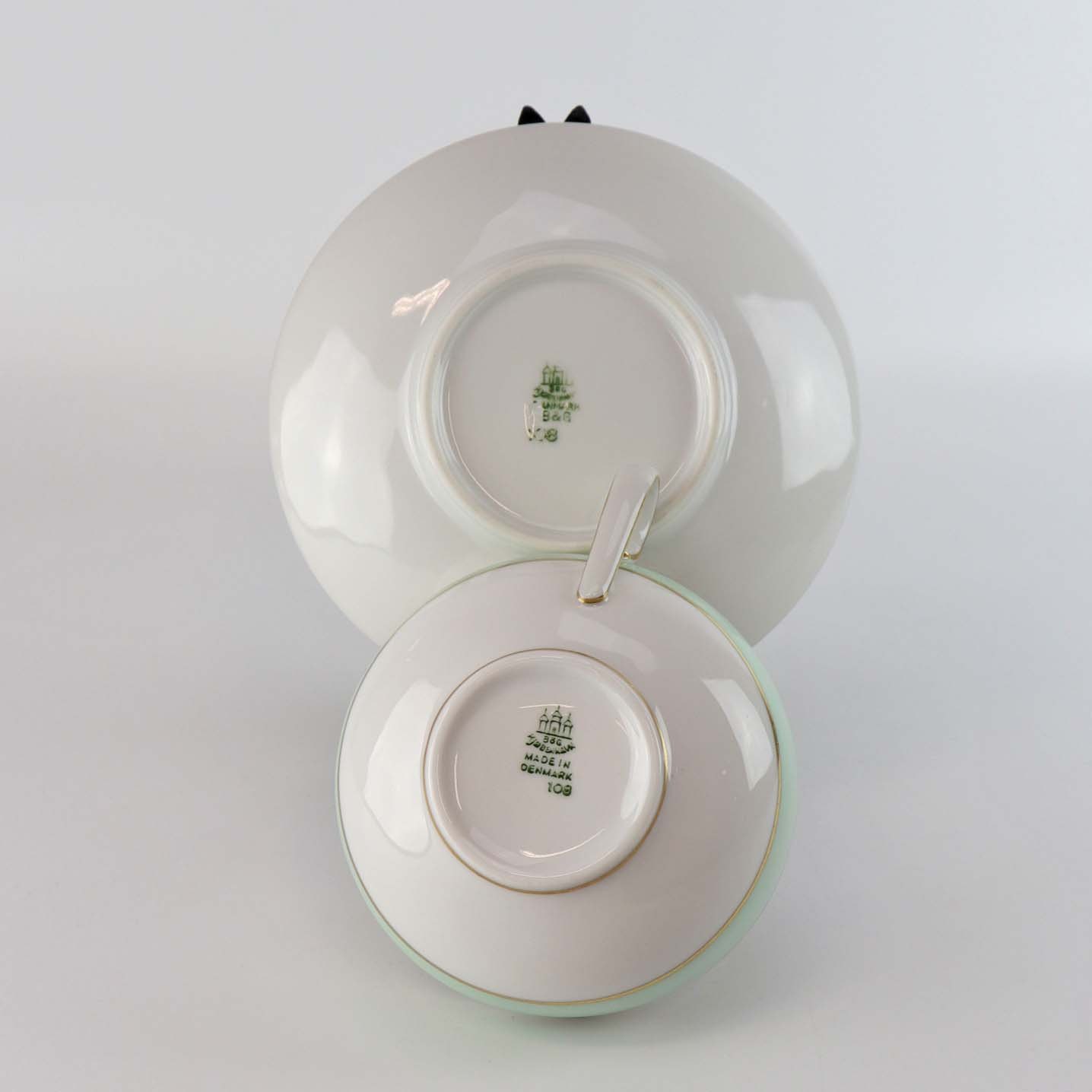 Strauss er af hvidt glaseret porcelæn med et bredt bånd i mintblå, samt enkelte guldlinjer. Lettere brugsspor kan forekomme