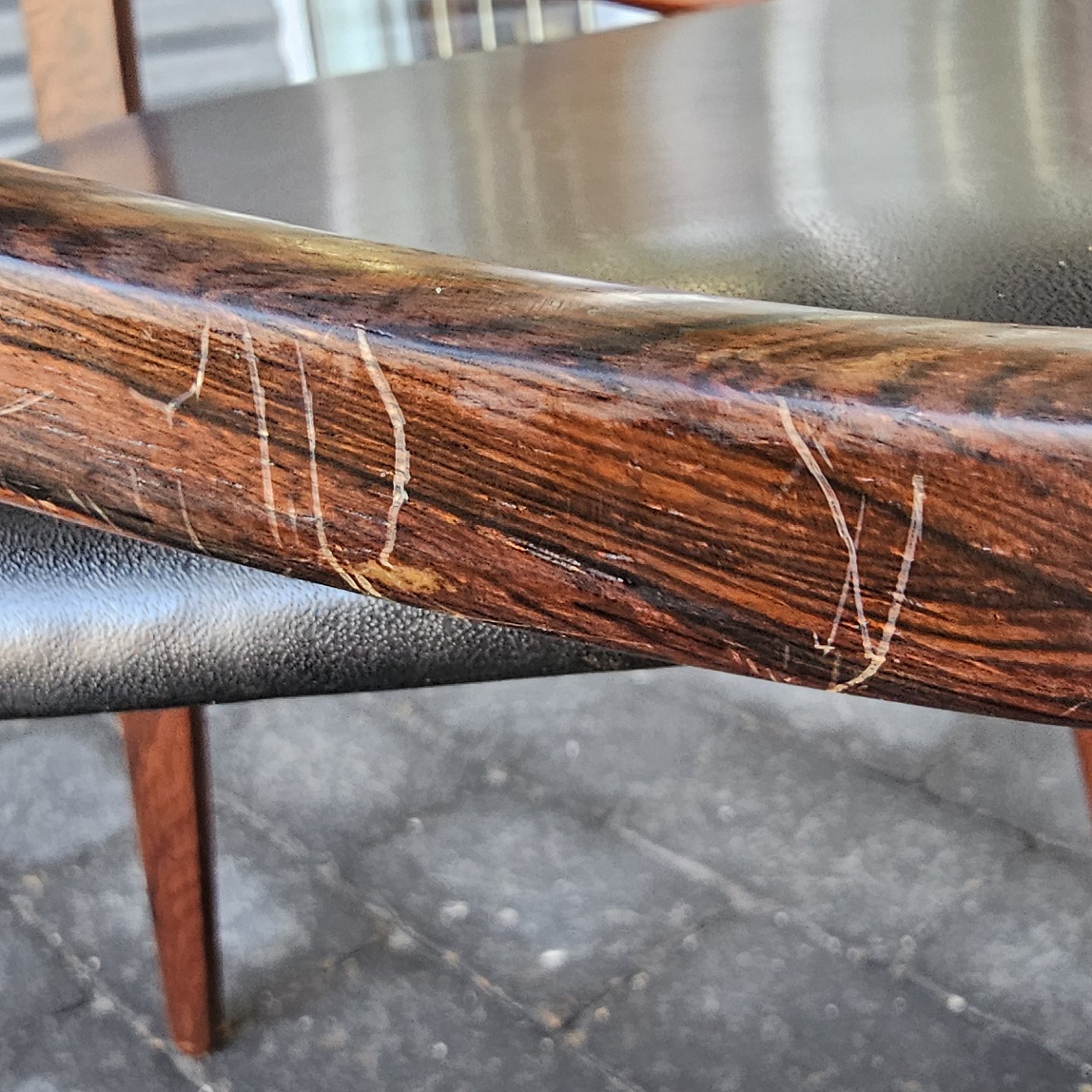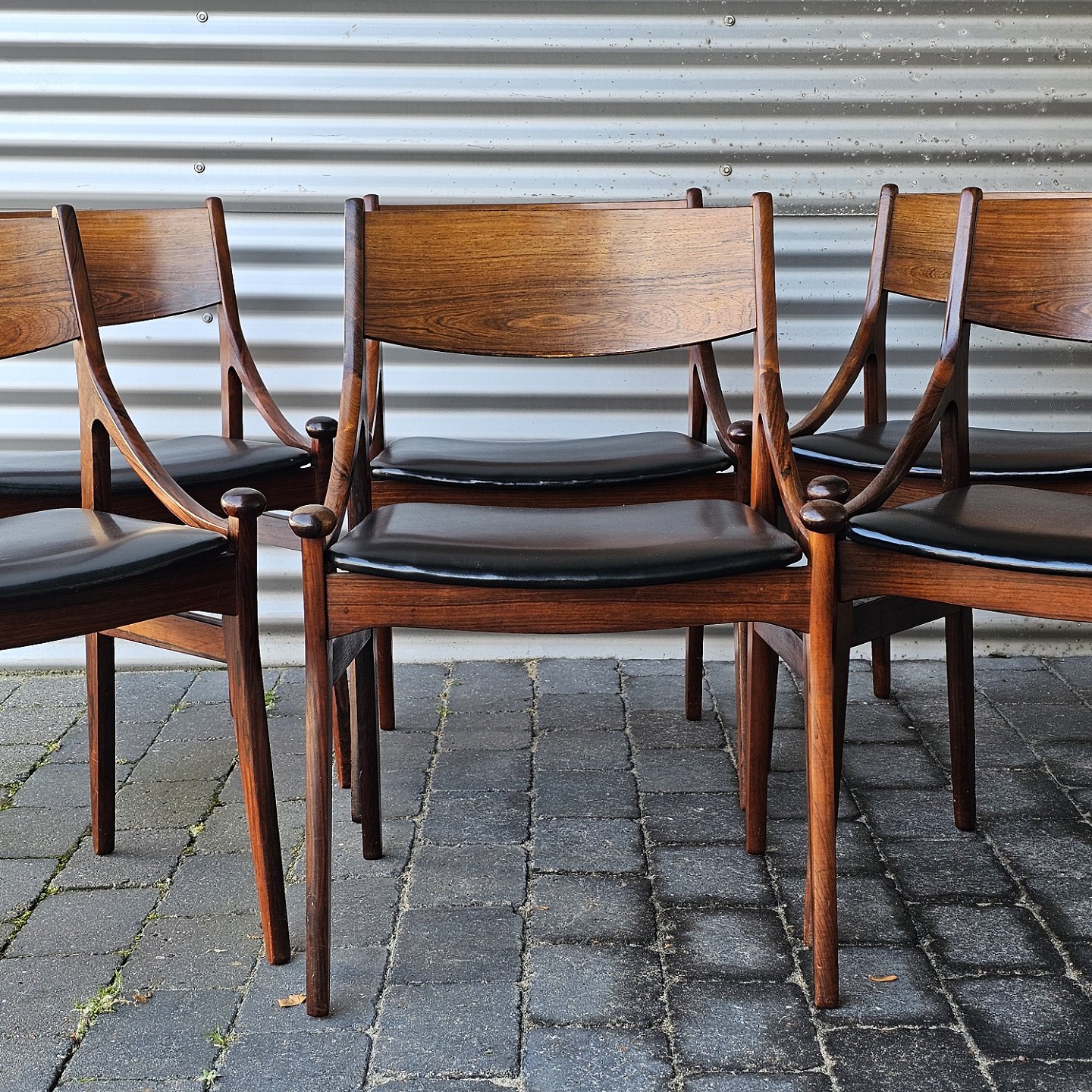 Sæt med 6 styk stole i palisander betrukket med sort læder