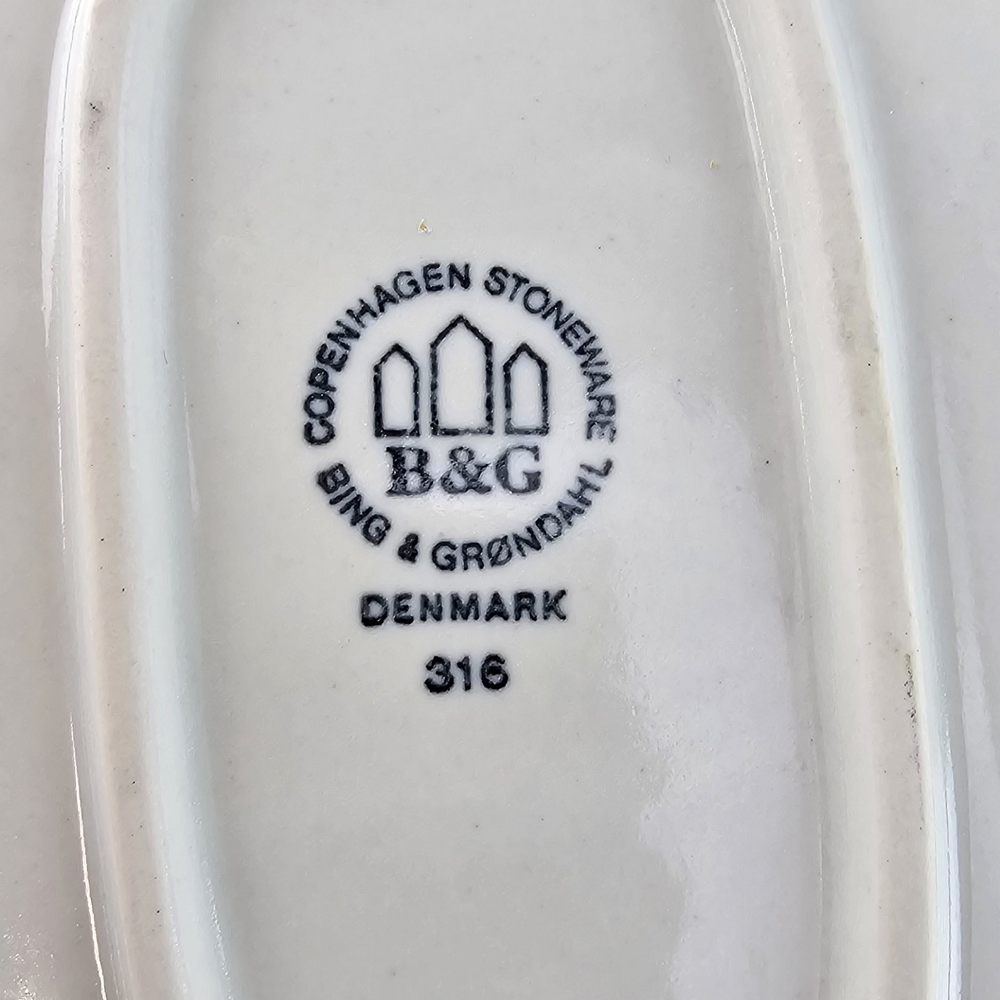Rektangulært fad i stentøj fra stellet Siesta. Nr. 316