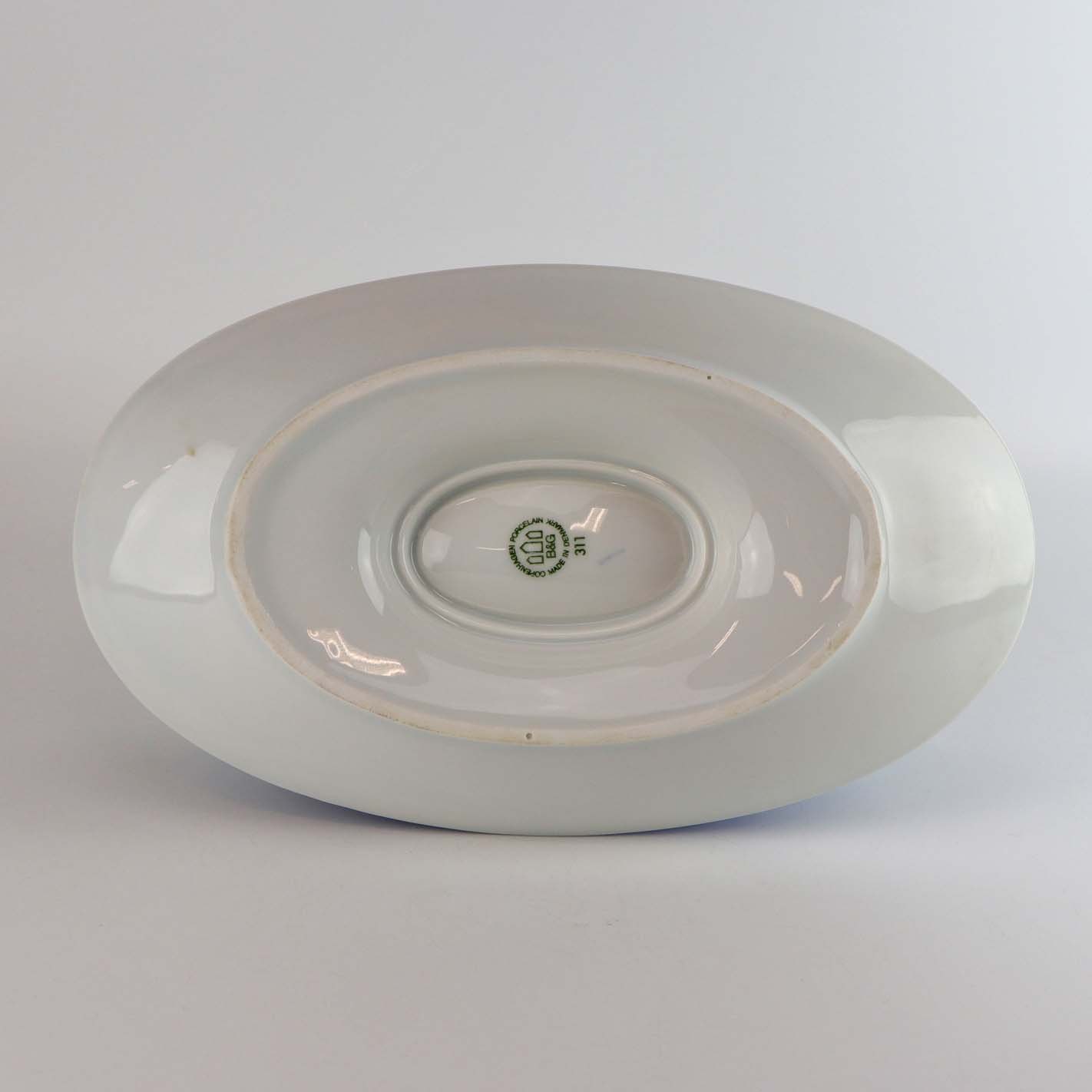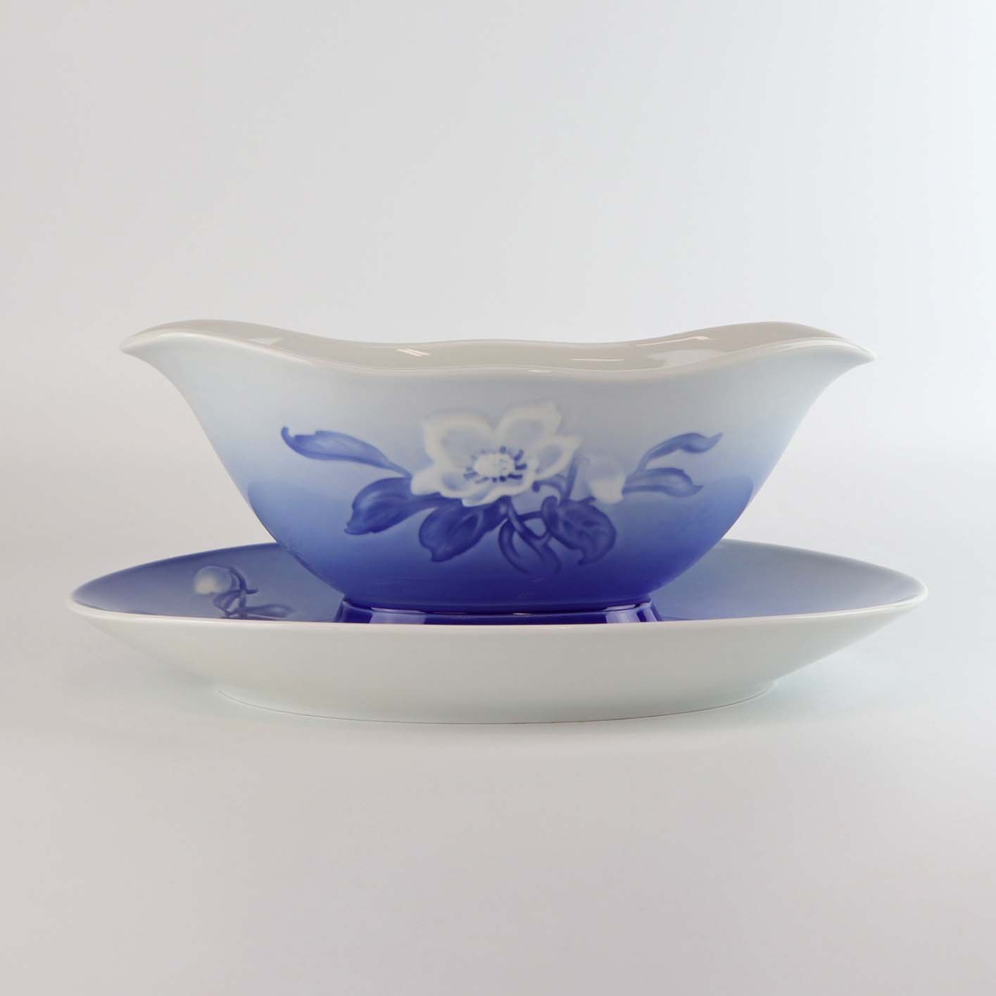 Julerose er hvidt porcelæn med gradueret blå farver, dekoreret med et motiv af en hvid julerose