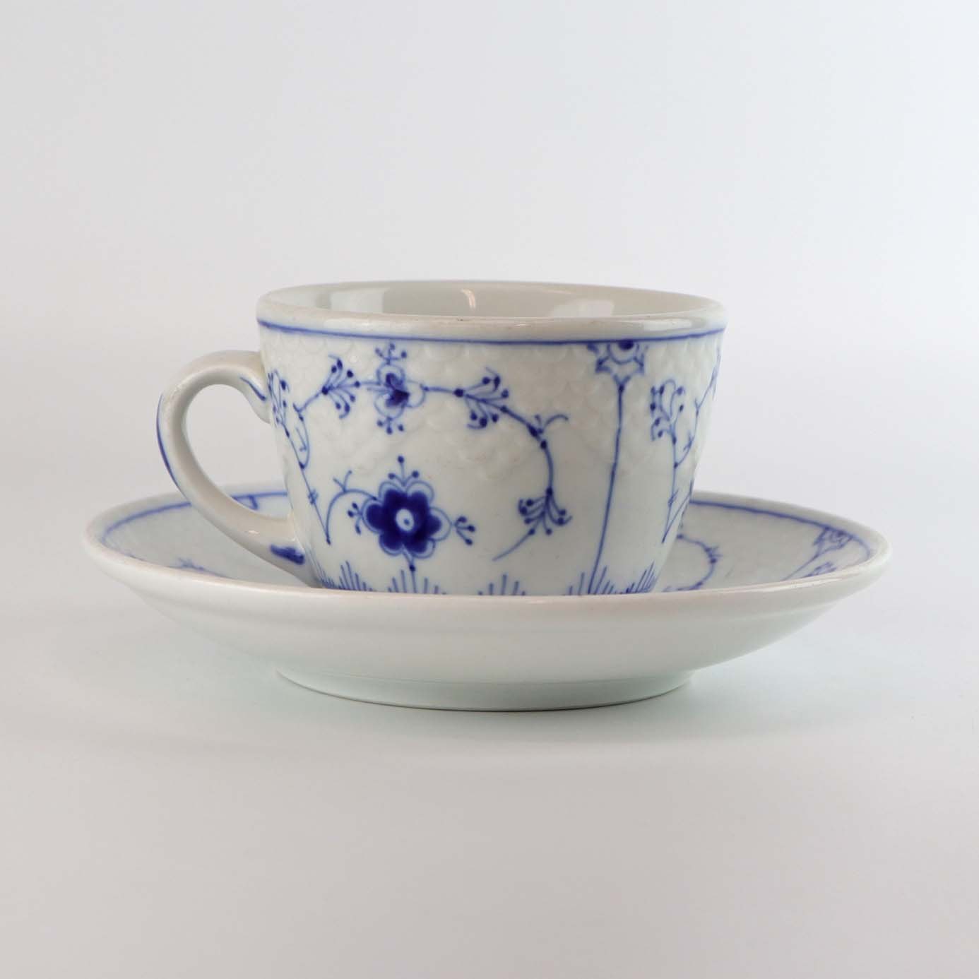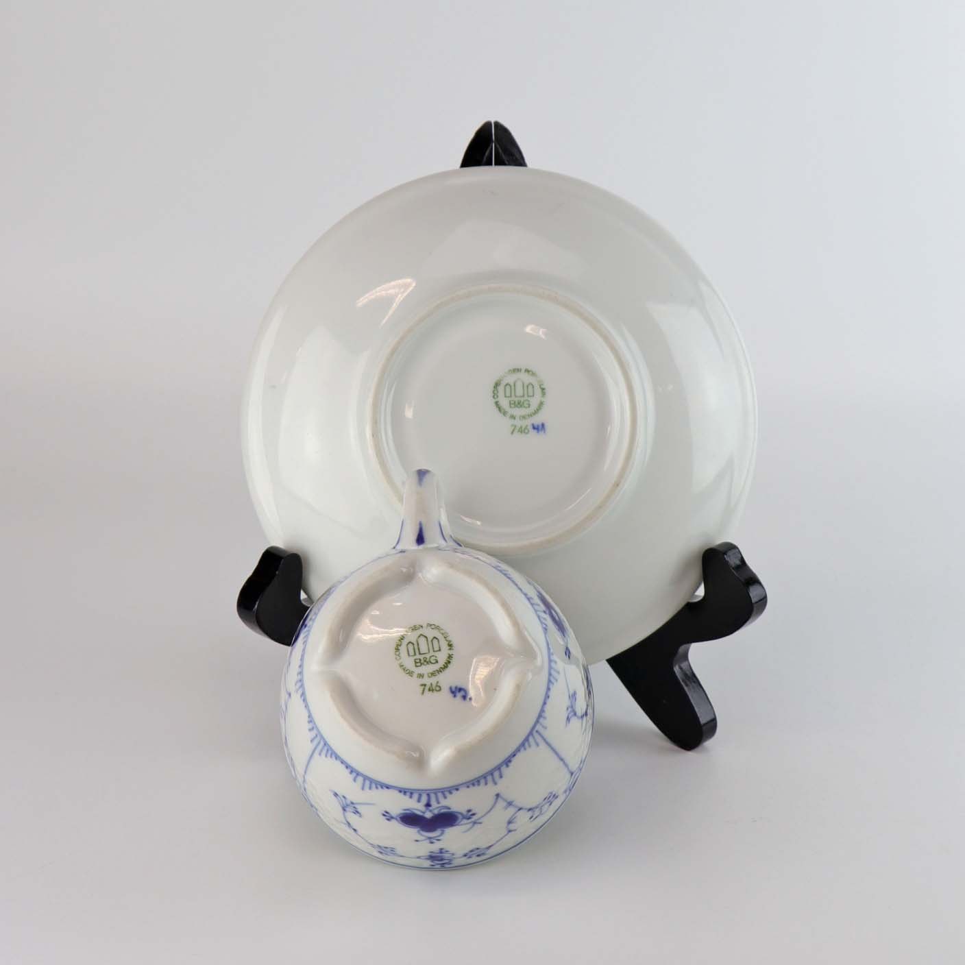 Stor kaffekop med underkop i hotelporcelæn fra stellet Blåmalet nr. 746