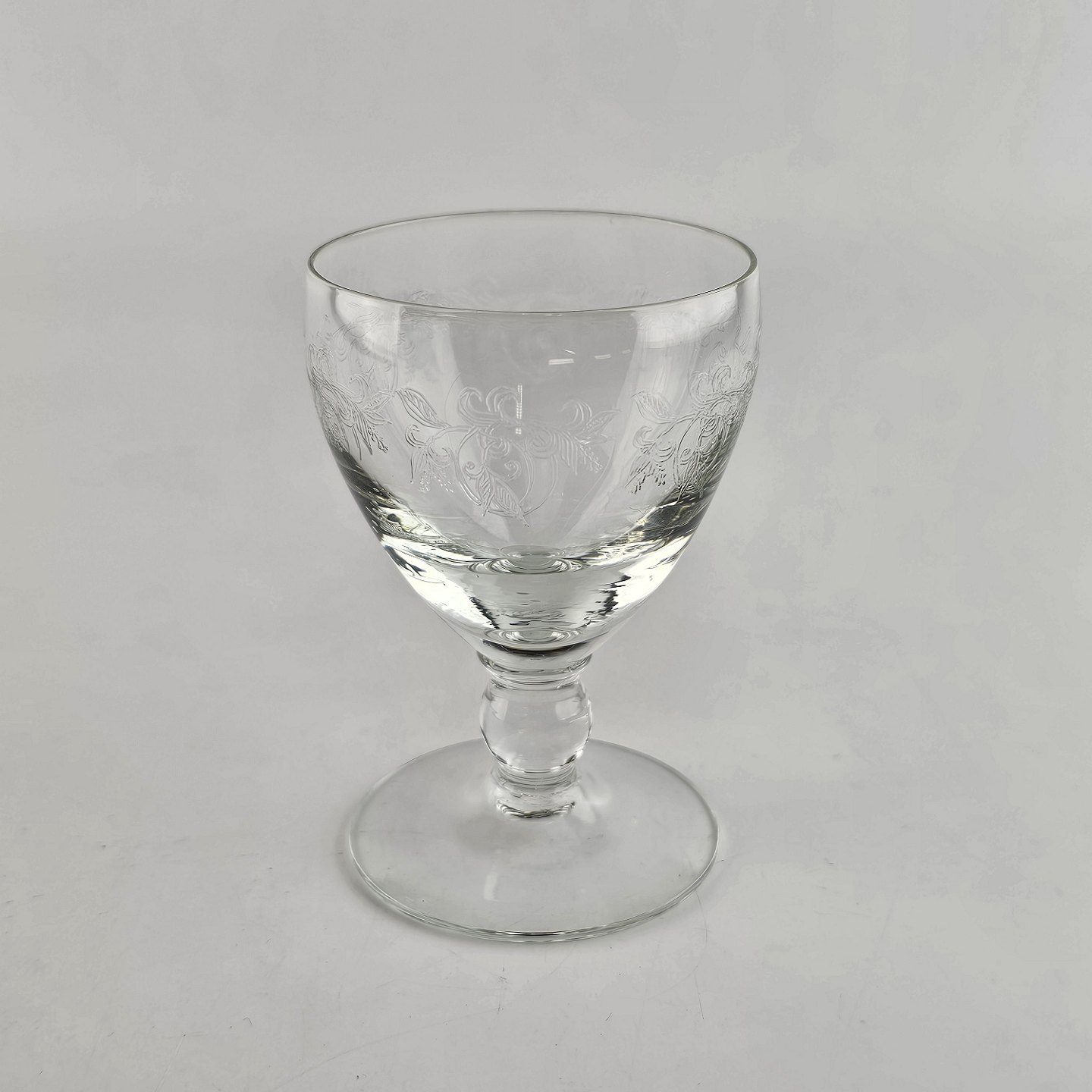Portvinsglas af mundblæst glas, dekoreret med ætsning nr. 5, fra serien Gerda. Produceret fra 1938 til 1950'erne
