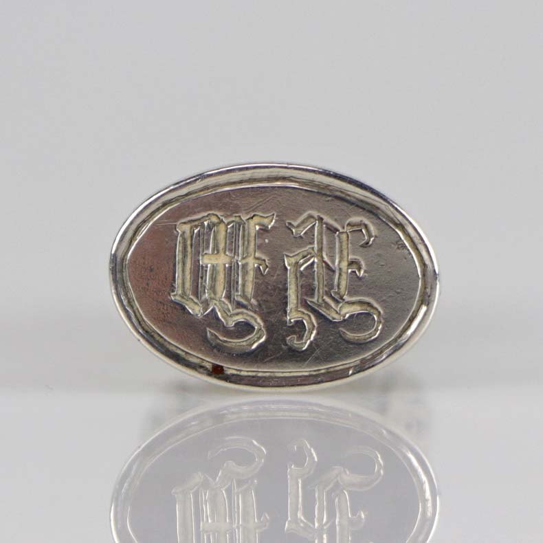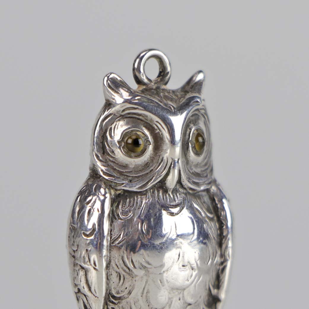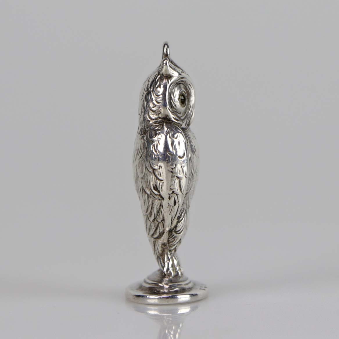 Signatur stempel i 830 sølv udformet som en ugle, der også kan bruges som halskæde vedhæng. Stempel har et gotisk mongram og ved foden er indgraveret K.G.J