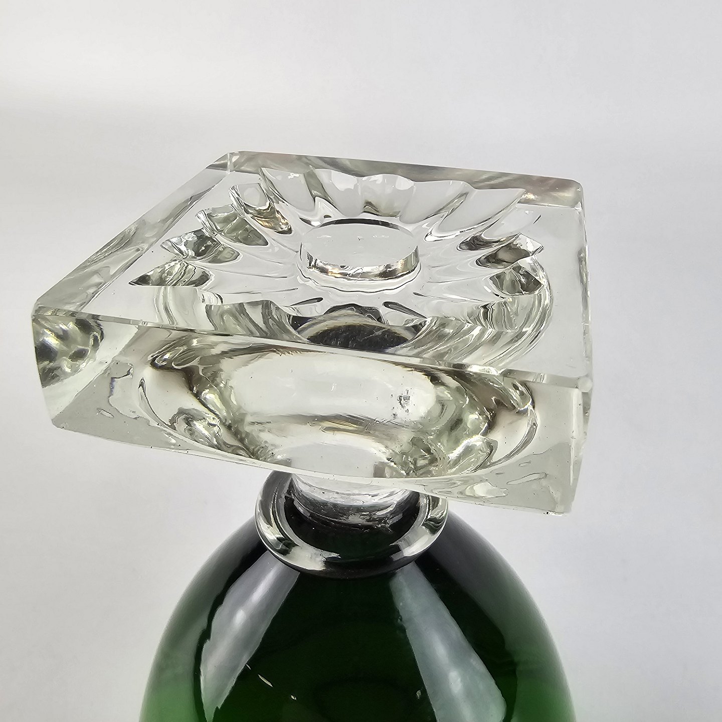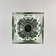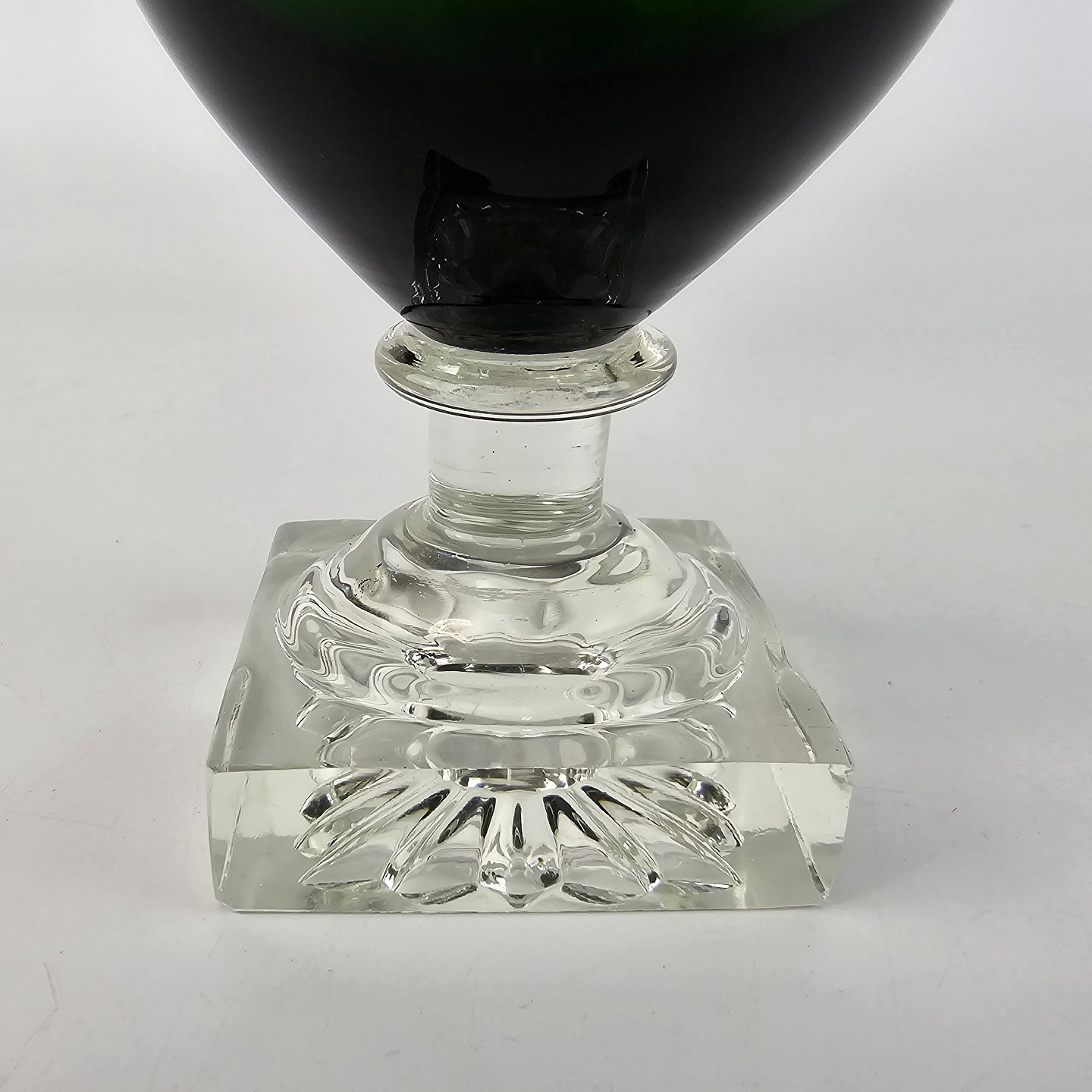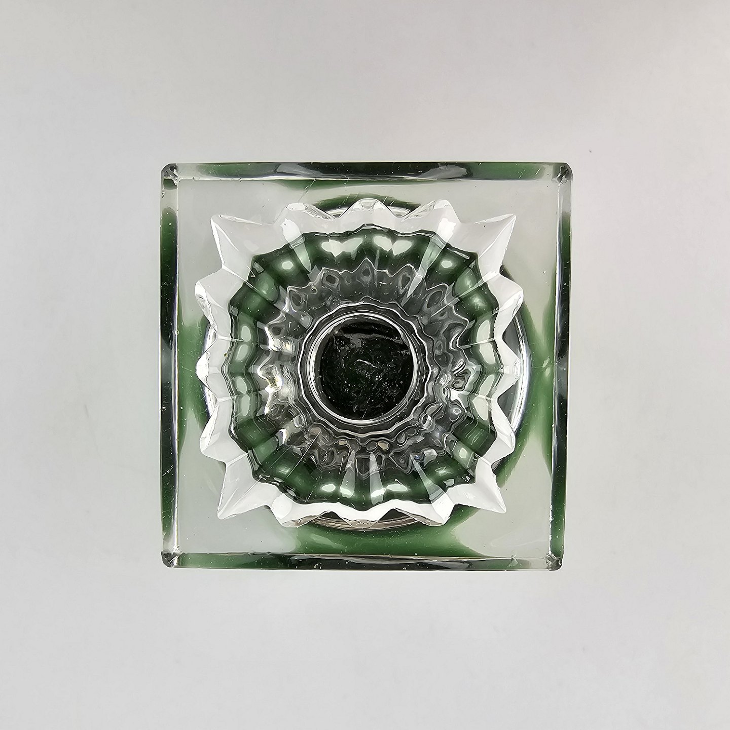 Grønt glas med firkantet fod i klar glas. Pyntet med slebet bånd af blade. Gorm den gamle glas grundform