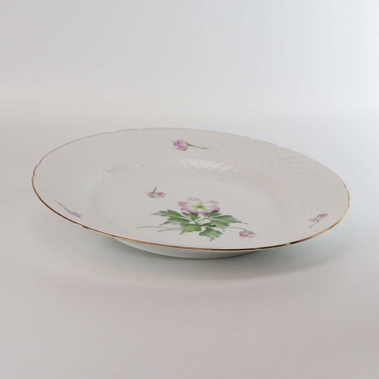 Flad middagstallerken i porcelæn fra stellet Anemone Macbeth. Nr. 25