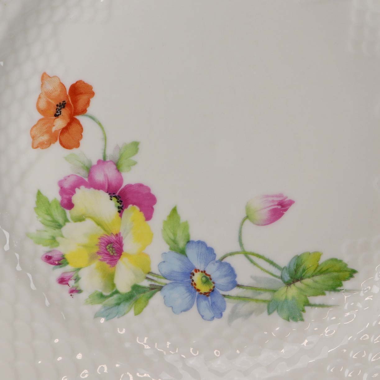 Thor Anemone er af cremefarvet glaseret porcelæn, dekoreret med forskellig farvede anemoner og gylden kant