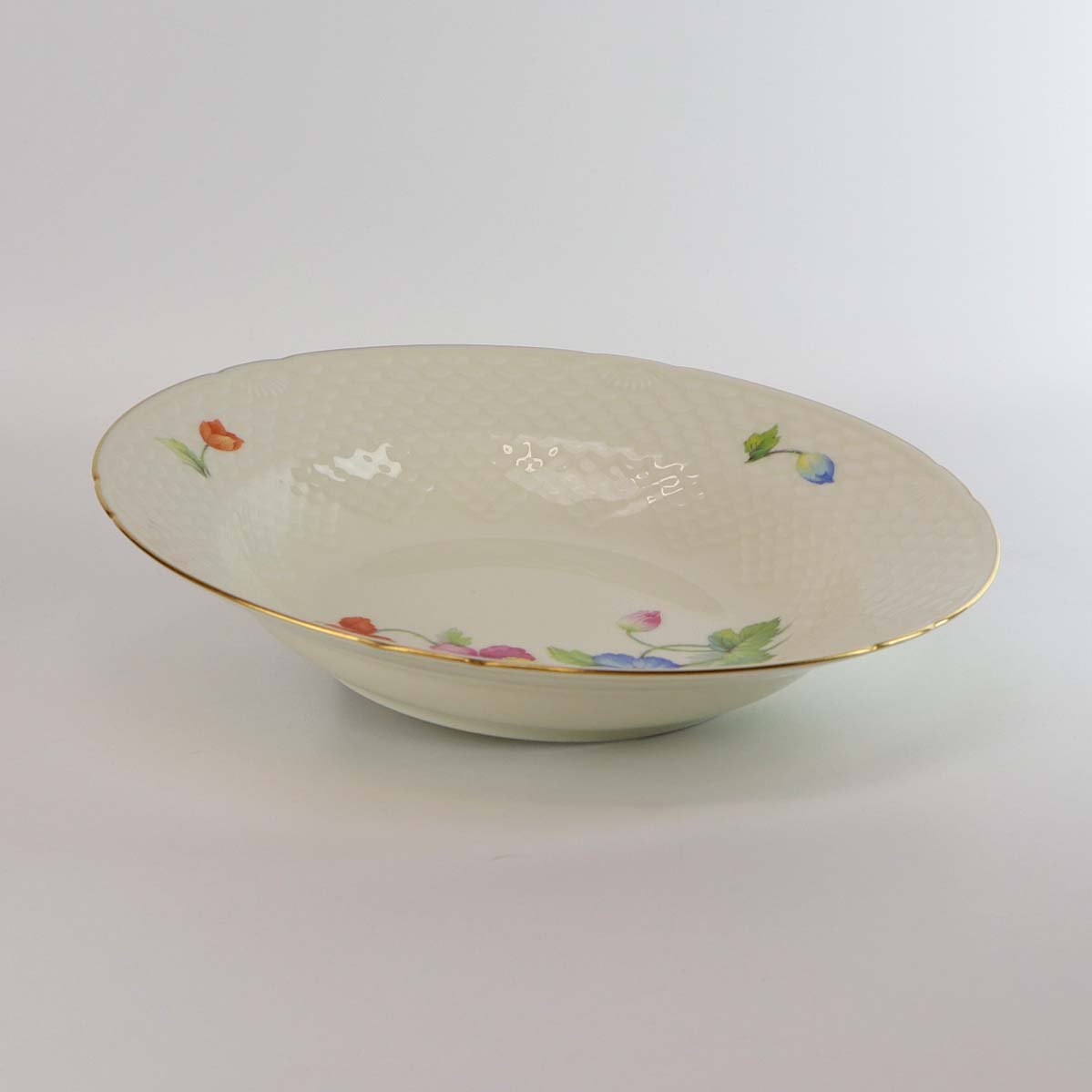 Thor Anemone er af cremefarvet glaseret porcelæn, dekoreret med forskellig farvede anemoner og gylden kant