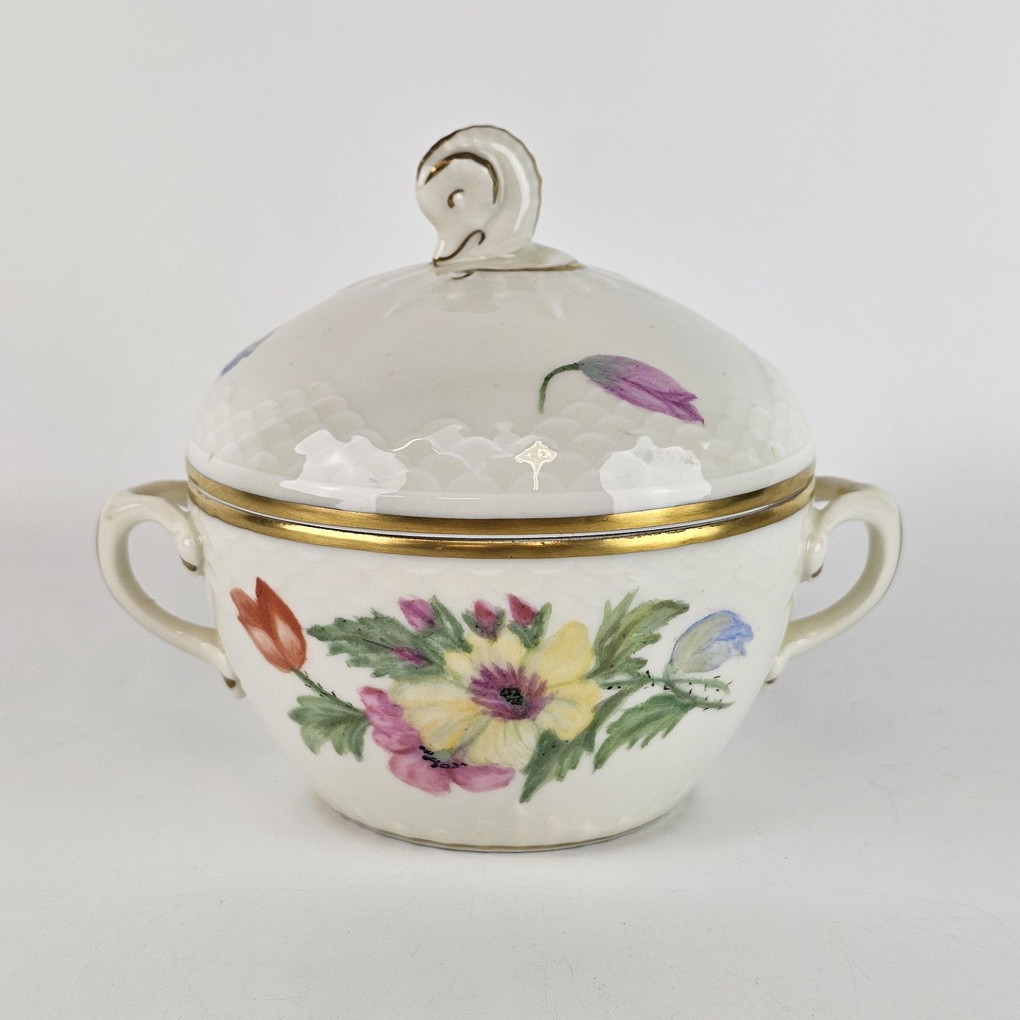 Thor Anemone er af cremefarvet glaseret porcelæn, dekoreret med forskellig farvede anemoner og gylden kant
