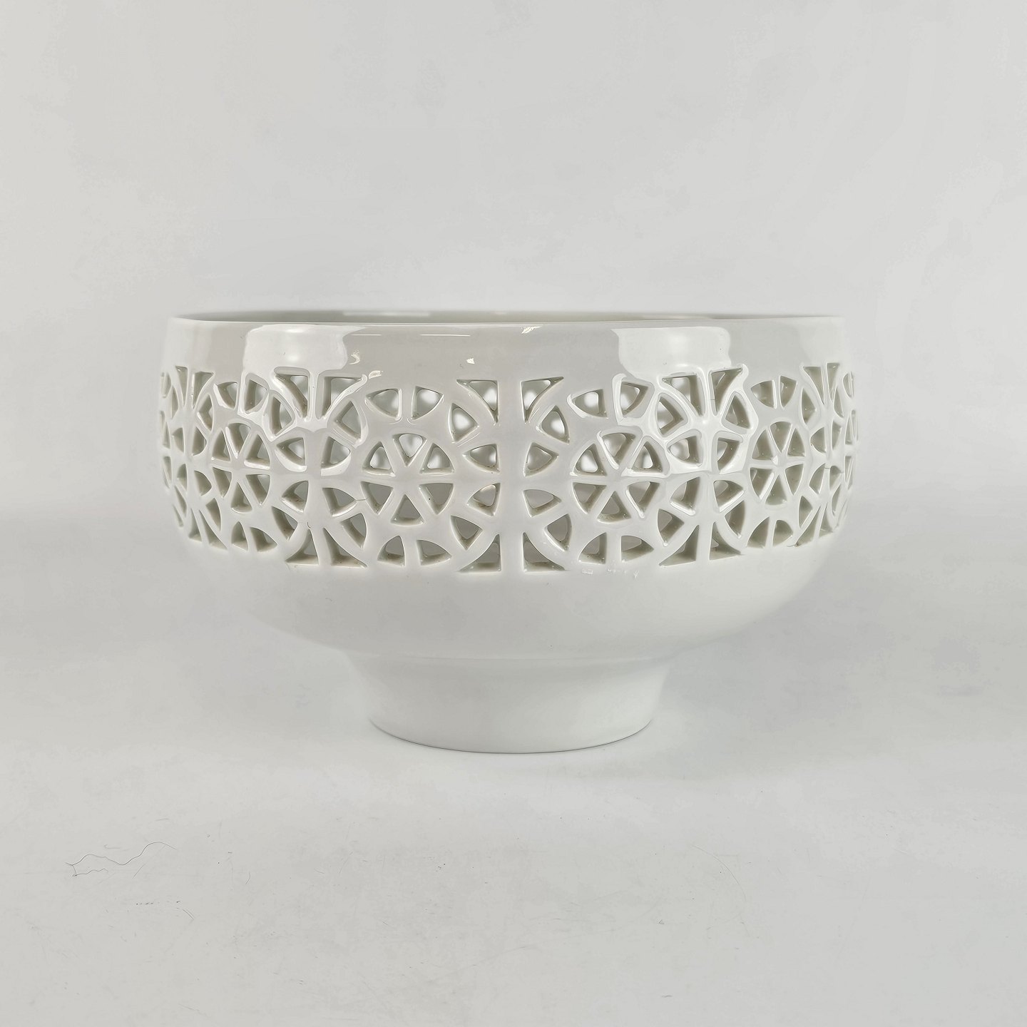 Skål i hvidt porcelæn med gennembrudt mønster. Nr. 5764