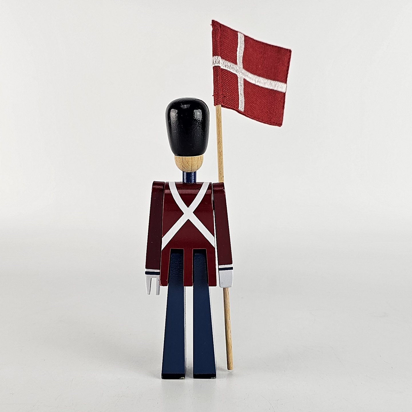 Figur i malet træ med motiv af en fanebærer i uniform og med flag